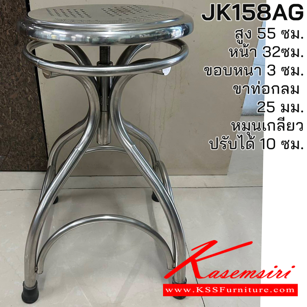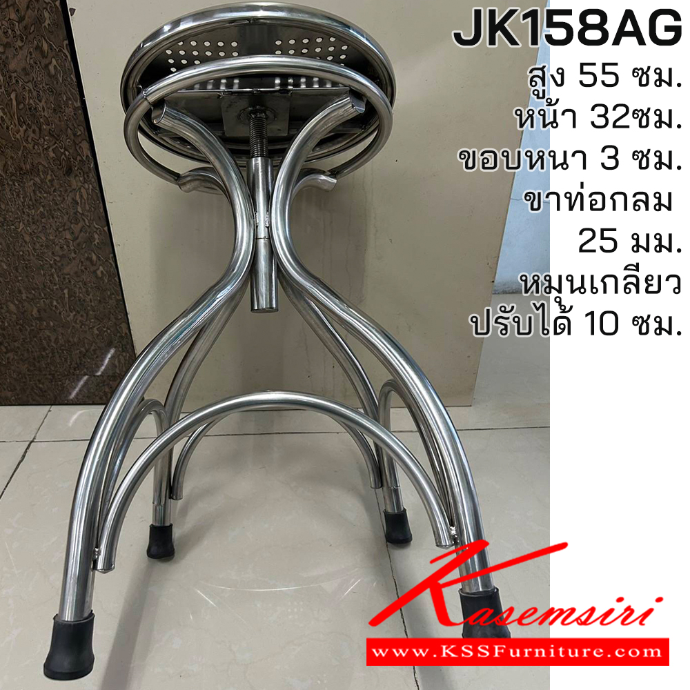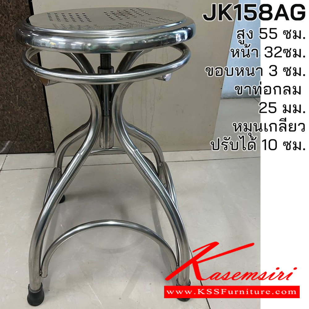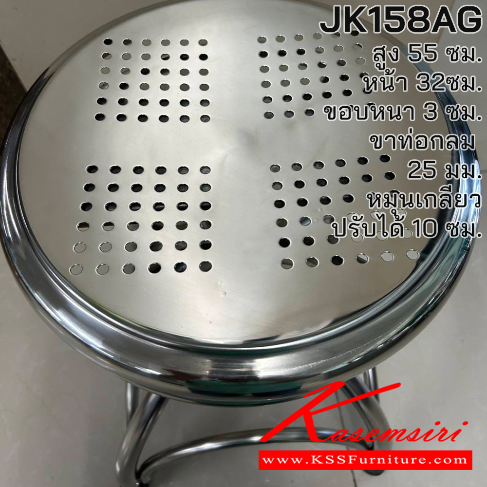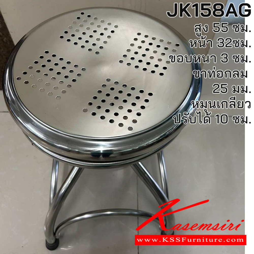 เก้าอี้สแตนเลสแท้ปรับระดับได้แบบเกลียว JK158AG หน้า 320 ซม. สูง 55 ซม. ขอบหนา 3 ซม. ขาท่อกลม 25 มม. แข็นแรง ทนทานต่อการใช้งาน เจเค เก้าอี้สแตนเลส