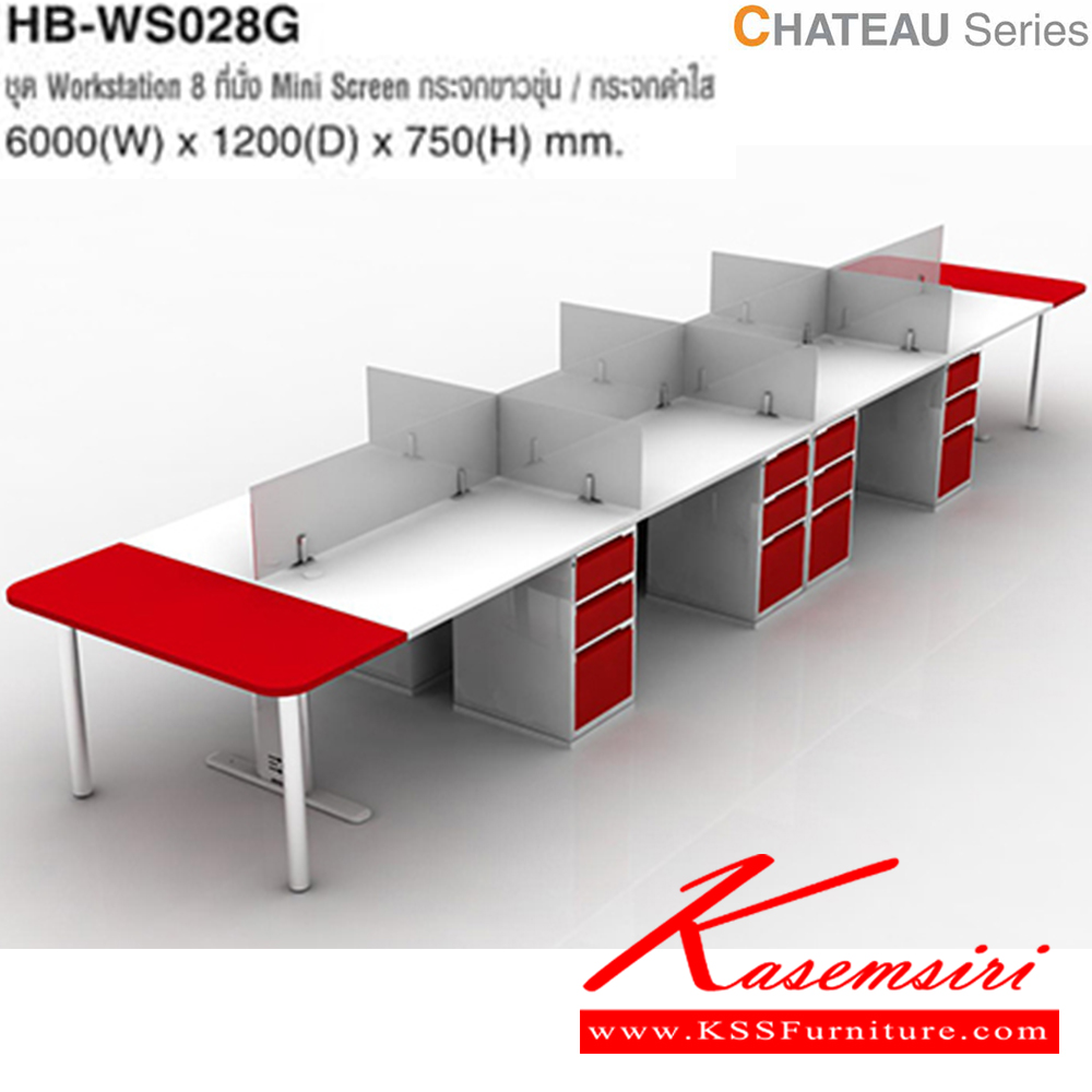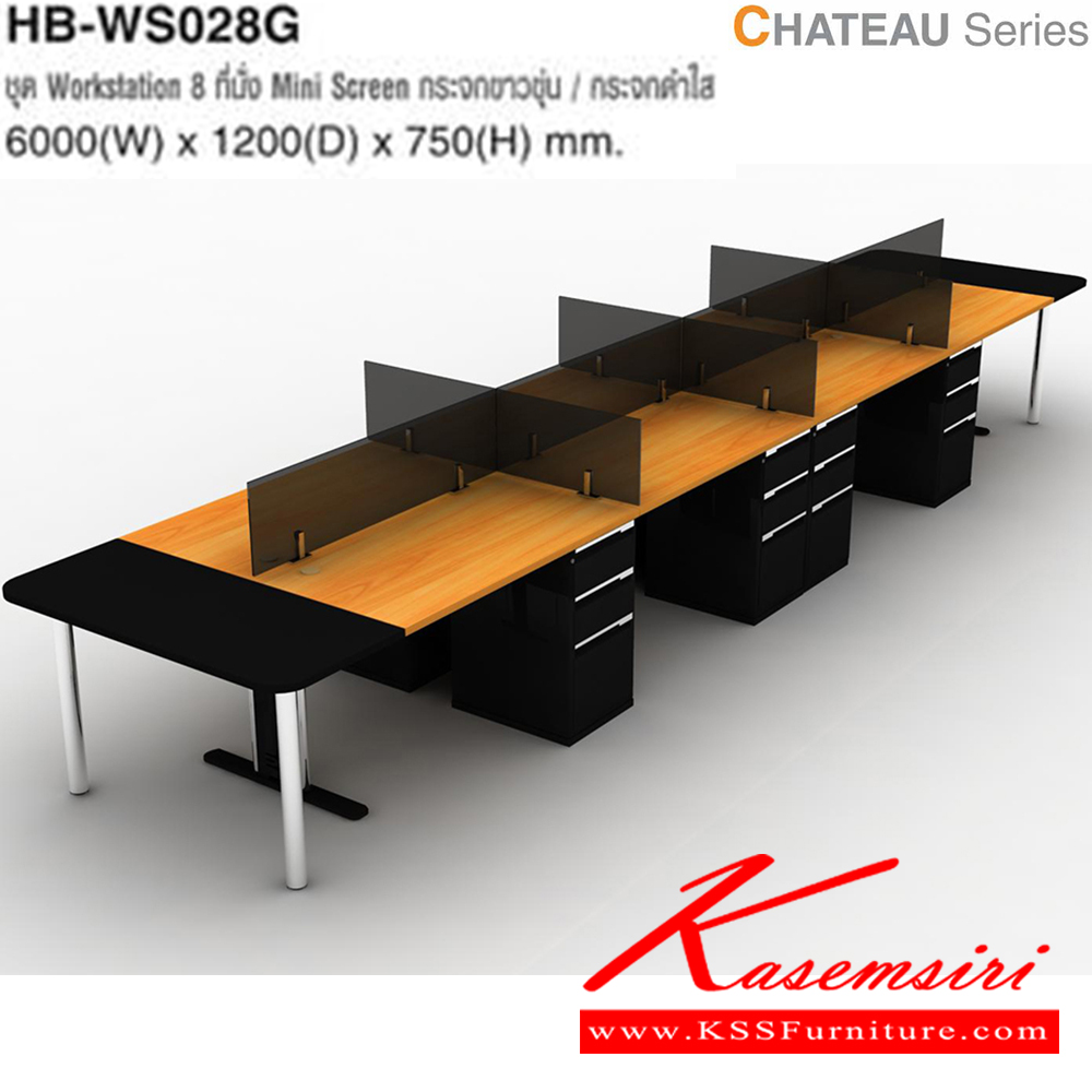 A Taiyo Chateau series office set with metal base for 8 people. Dimension (WxDxH) cm : 600x120x75
