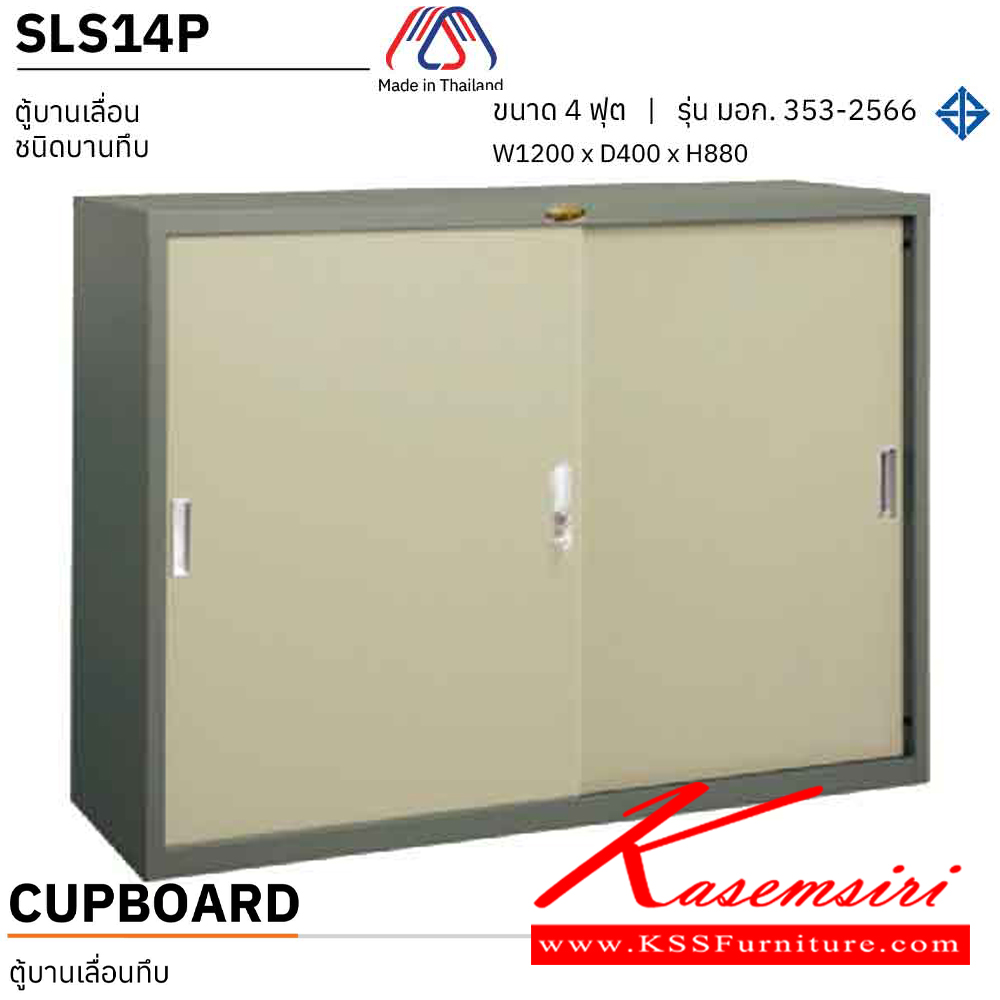 ตู้เอกสารเหล็กบานเลื่อนทึบ 4ฟุต ขนาด 1200X400X880 มม. เหล็กหนา 0.6 มม. มอก. 353-2566 เพรสซิเด้นท์ ตู้เอกสารเหล็ก