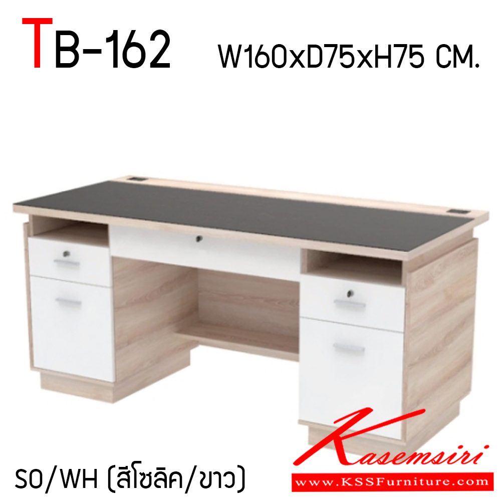 โต๊ะทำงาน1.6 ม. มีลิ้นชักกลางและลิ้นชักข้างพร้อมที่เก็บของบานเปิด ขนาด 1600x750x750 มม.SPEC:Pu/Melamine(E1) Topโต๊ะปิดกระจกชาดำ มีช่องร้อยสายไฟ เอ็กซ์ซีเอฟ โต๊ะสำนักงานเมลามิน