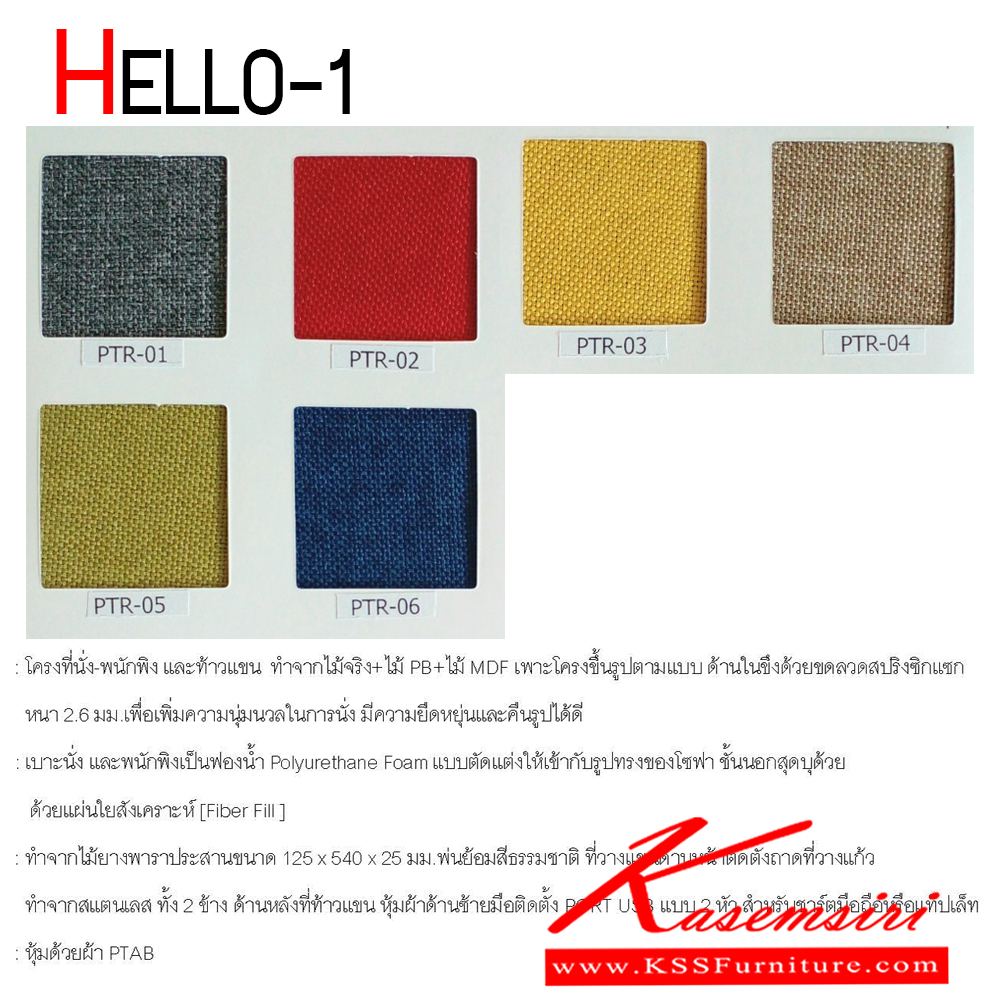 โซฟา HELLO/2 (ฮัลโล/2) โซฟา 2 ที่นั่ง ขนาด ก1465xล705xส785 มม. Port USB x2 ช่องวางแก้วหรือขวดน้ำ สามารถเลือกสีผ้า PTR หุ้มได้ เพอร์เฟ็คท์ โซฟาชุดเล็ก