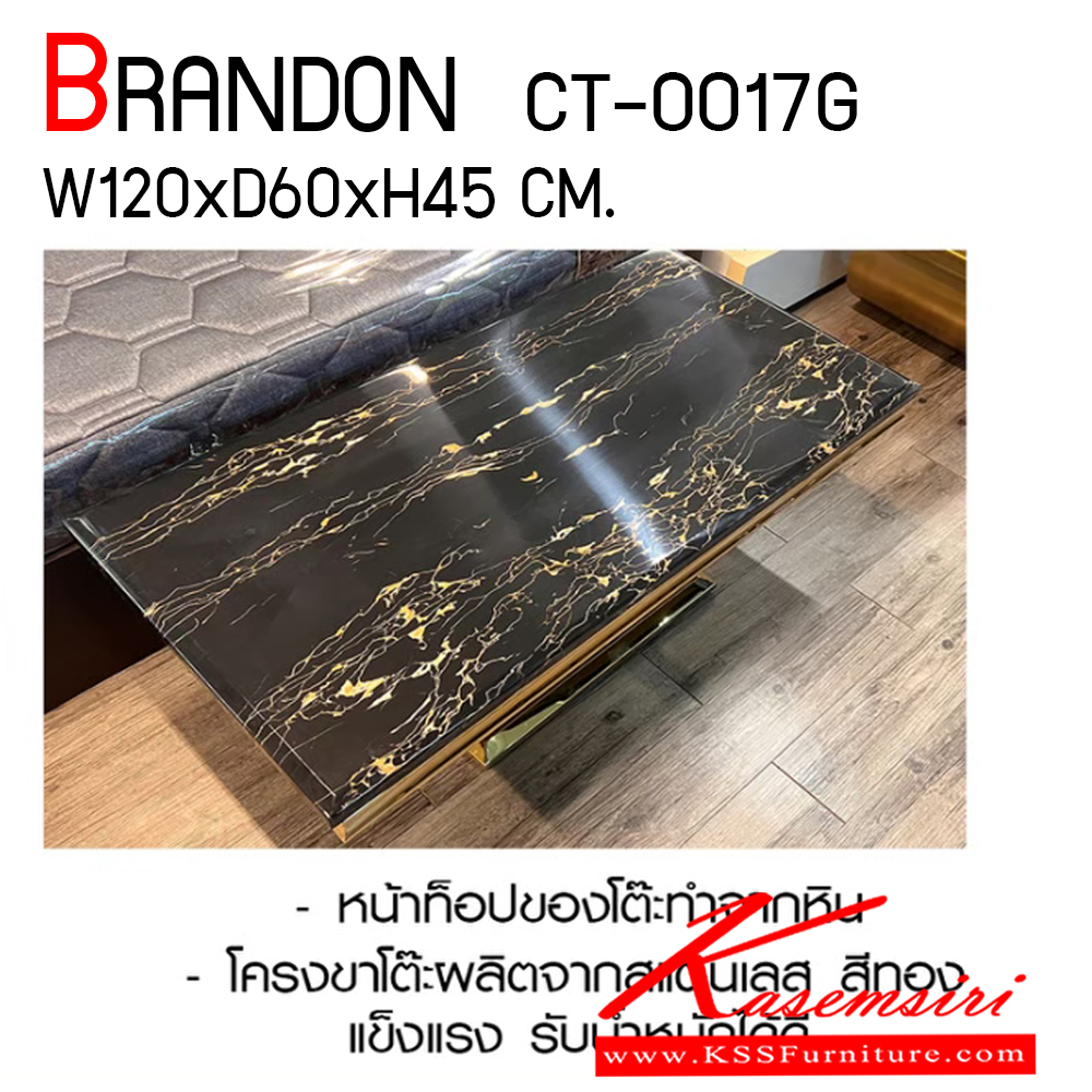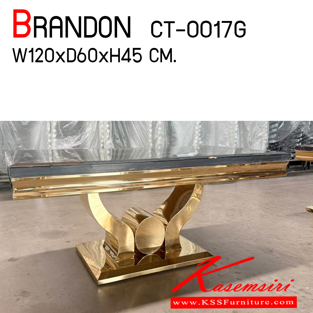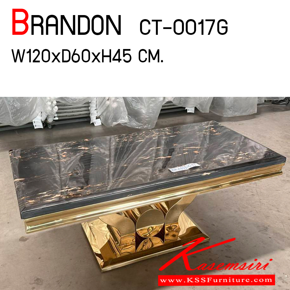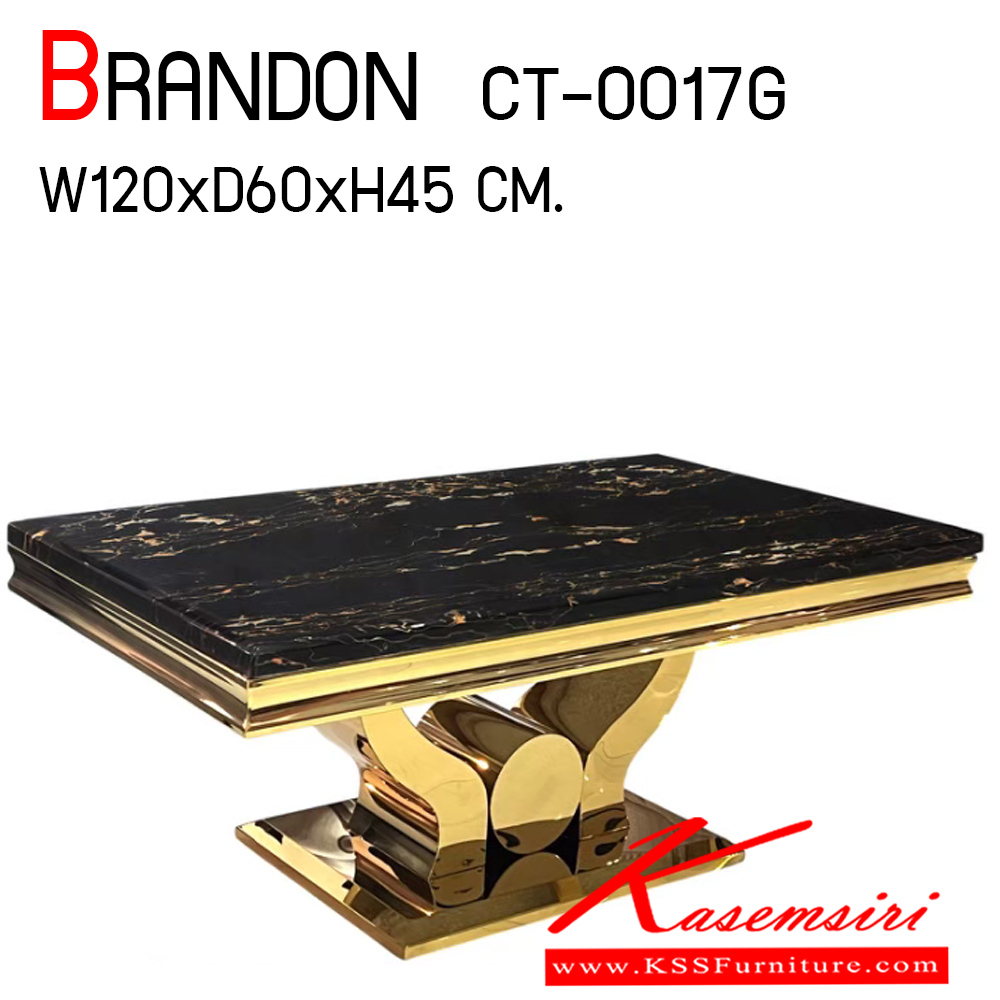 โต๊ะกลางหน้าหิน รุ่น BRANDON (CT-0017G) แบรนดอน (ซีที-0017จี) ขนาด ก1200xล600xส450 มม. หน้าท็อปเป็นหินสังเคราะห์ปิดผิว โครงสแตนเลส สีทอง เบสช้อยส์ โต๊ะกลางโซฟา