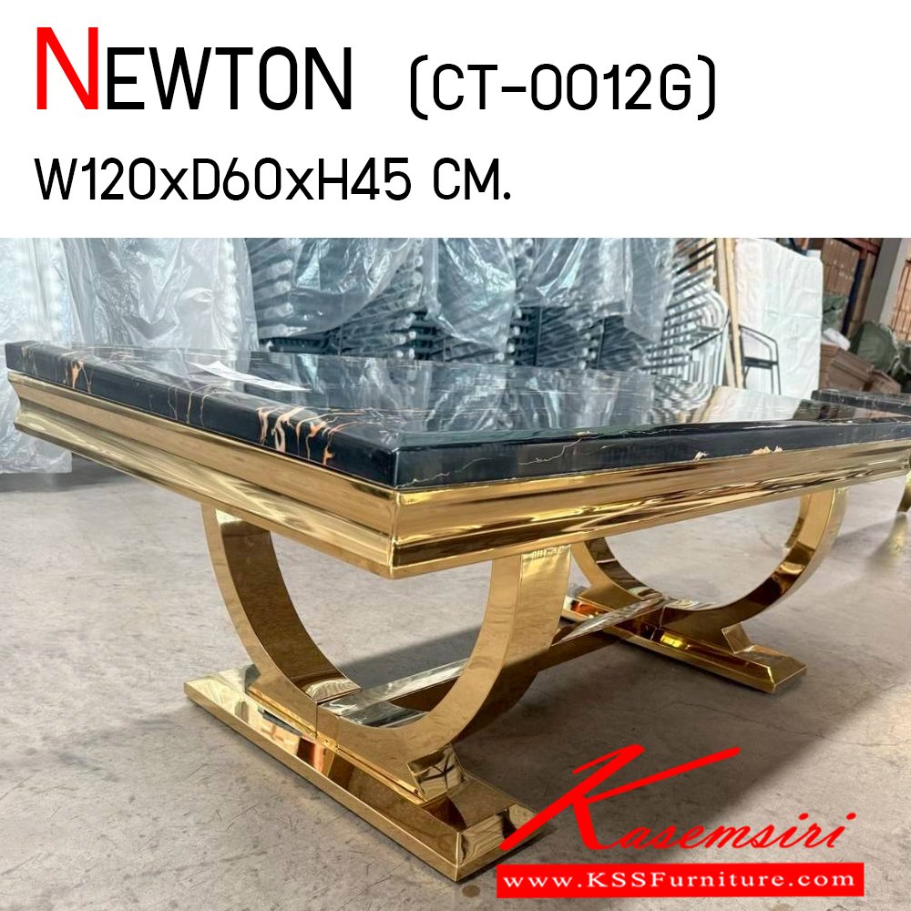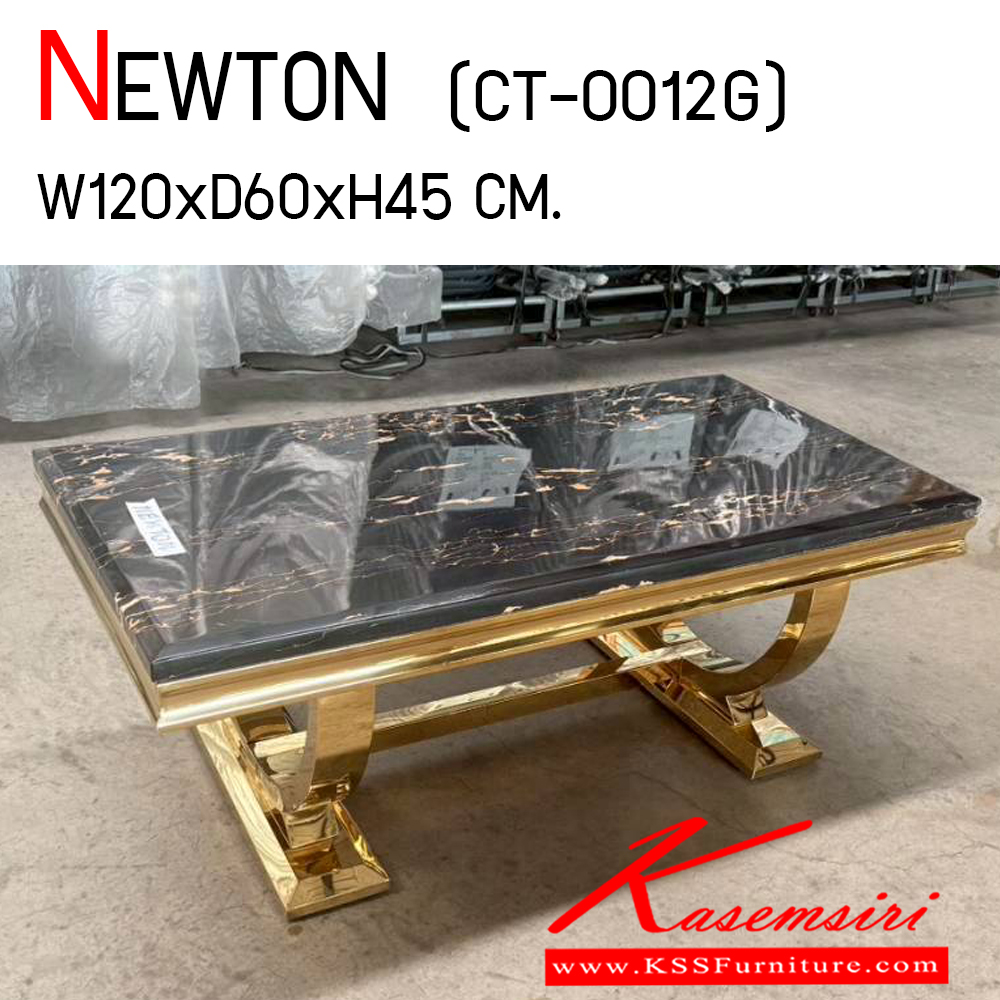 โต๊ะกลางหน้าหิน รุ่น NEWTON (CT-0012G) นิวตัน (ซีที-0012จี) ขนาด ก1200xล600xส450 มม. หน้าท็อปเป็นหินสังเคราะห์ปิดผิว โครงสแตนเลส สีทอง เบสช้อยส์ โต๊ะกลางโซฟา