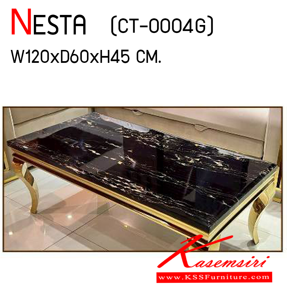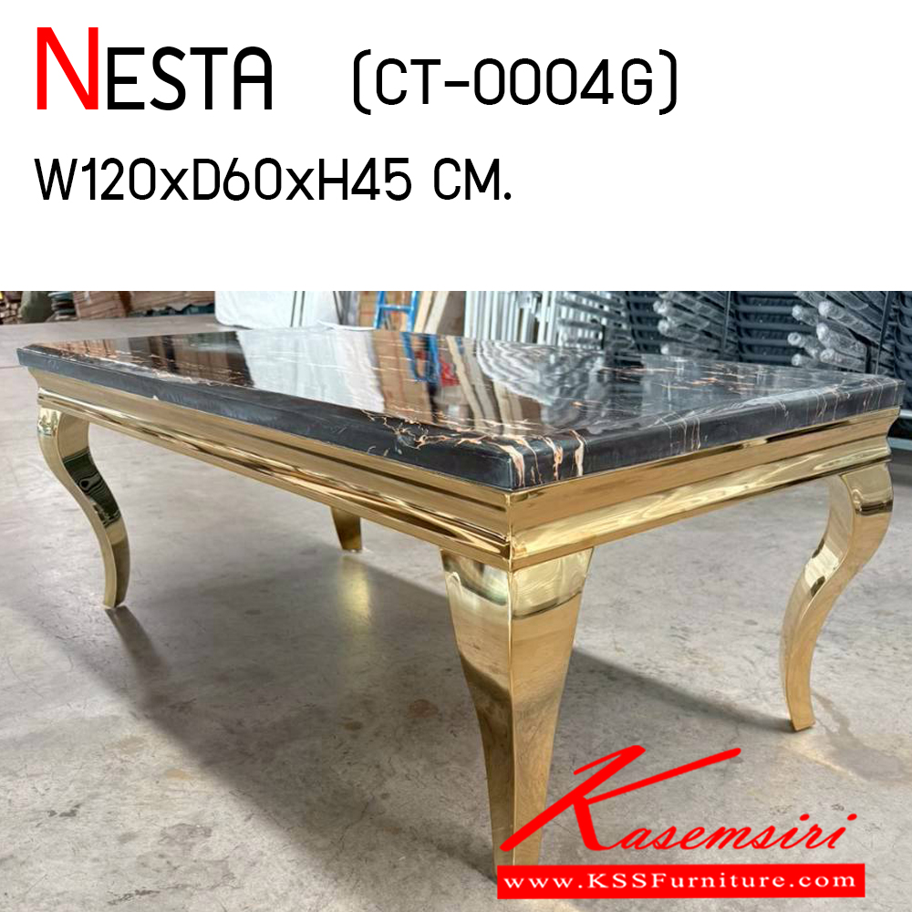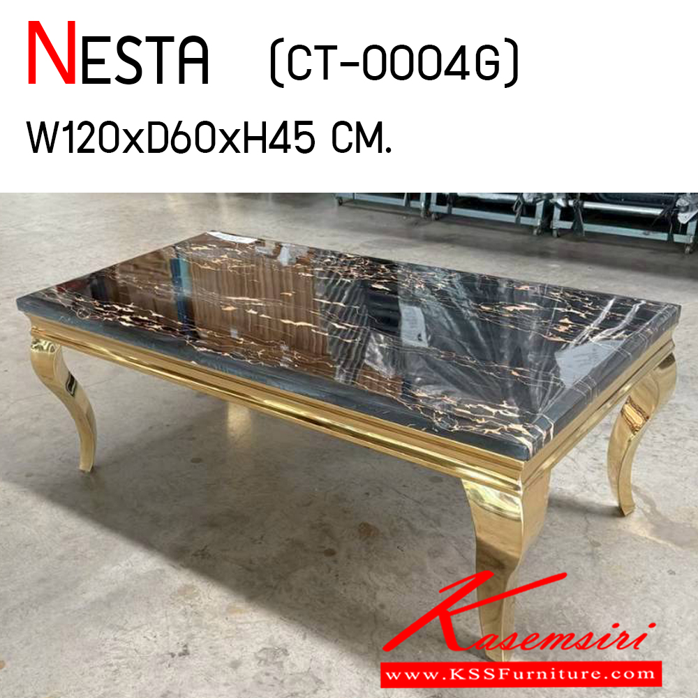 โต๊ะกลางหน้าหิน รุ่น NESTA (CT-0004G) เนสต้า (ซีที-0004จี) ขนาด ก1200xล600xส450 มม. หน้าท็อปเป็นหินสังเคราะห์ปิดผิว โครงสแตนเลส สีทอง เบสช้อยส์ โต๊ะกลางโซฟา