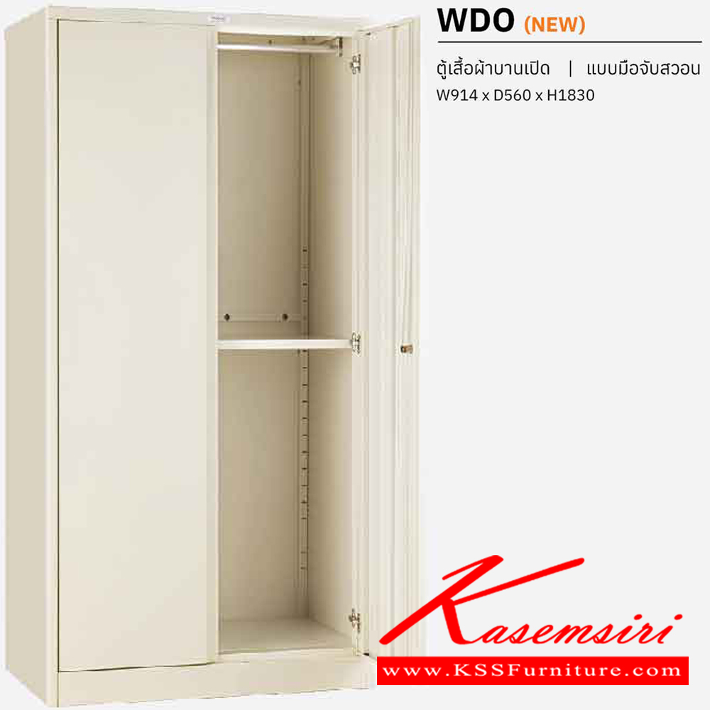 ตู้เสื้อผ้าเหล็กบานเปิด แบบมือจับสวอน ขนาด ก914Xล560Xส1830 มม. พร้อมแผ่นชั้นปรับระดับ เวลโคร ตู้เสื้อผ้าเหล็ก