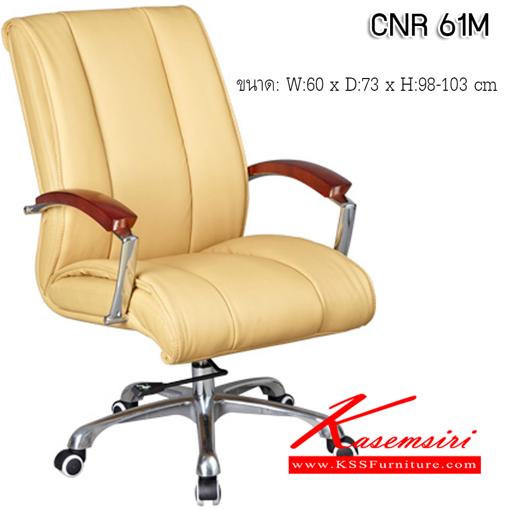 A CNR office chair with PU/PVC/genuine leather seat and chrome plated base, gas-lift adjustable. Dimension (WxDxH) cm : 60x73x98-103