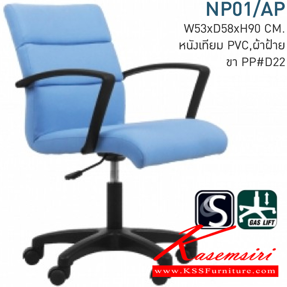 เก้าอี้สำนักงาน ก630xล640xส770 มม. มี2แบบ (บุหนังเทียมMVN และบุผ้าCAT) (ขาPPรุ่นD22ไฮโดรลิค120CM) แขนPPมีก้อนโยก เก้าอี้สำนักงาน MONO