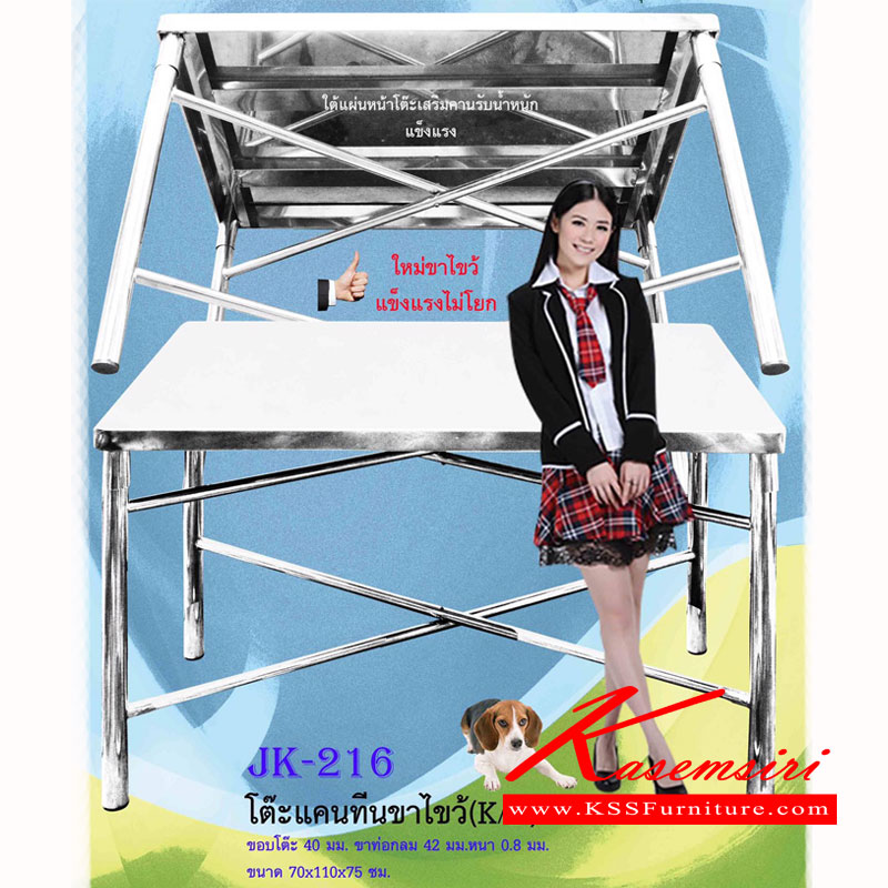 โต๊ะสแตนเลส ขาไขว้ ขนาด ก1100xล700xส750 มม. ขาท่อกลม 42มม. โต๊ะสแตนเลส เจเค