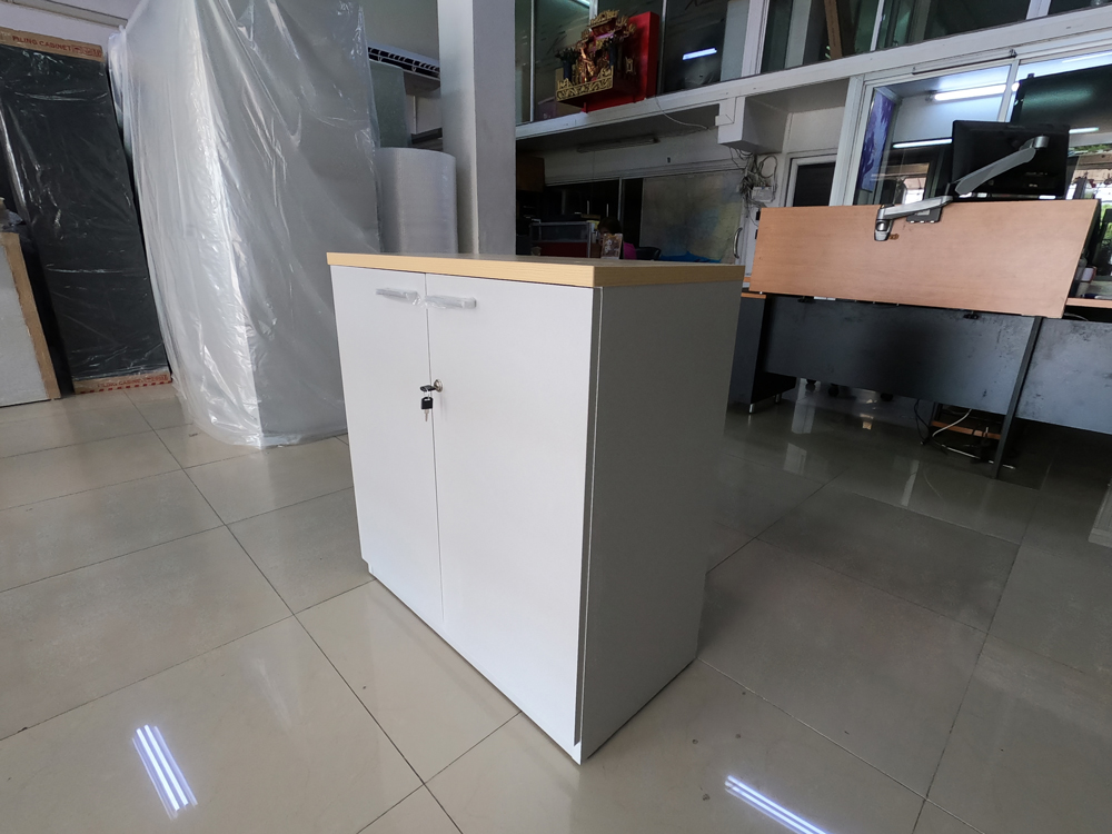 ตู้เอกสารสำนักงานเตี้ย บานเปิด สามารถเลือกสีไม้ได้ TOP เมลามีนหนา 25 มม. PVC Edging 2 มม. ขาและแผ่นชั้น 19 มม. PVC Edging 1 มม. วีซี ตู้เอกสาร-สำนักงาน