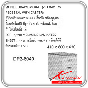 A Lucky metal mobile cabinet with 2 drawers and melamine lamintaed sheet on top surface. Dimension (WxDxH) cm : 41x60x63 Metal Cabinets
