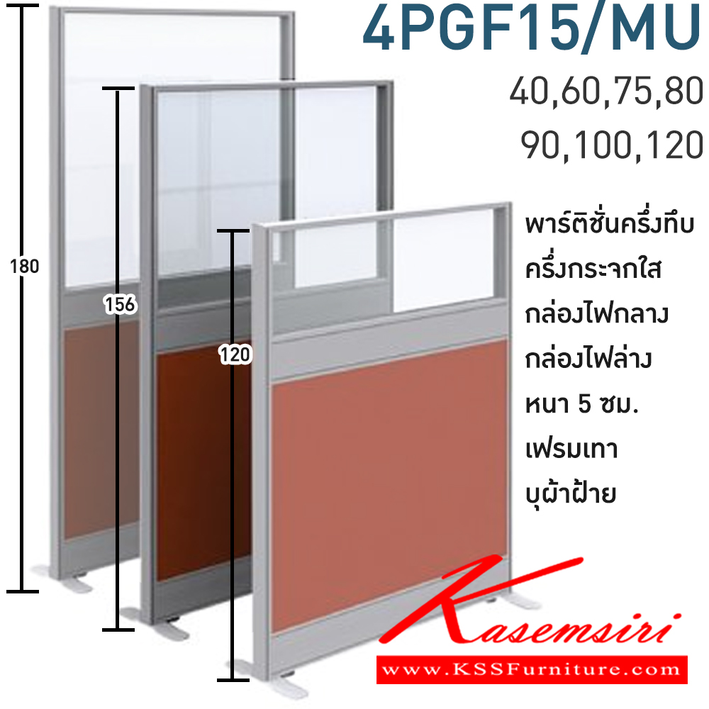 พาร์ทิชั่นทึบ ครึ่งกระจกใส+กล่องไฟกลาง+กล่องไฟล่าง สูง180ซม. 1 แผ่น(ส่วนทีบ90ซม รวมปุ่มปรับ กระจกสูง66ซม.รวมกรอบ) พร้อมฝาจบ ไม่รวมอุปกณ์เสริม ขาตั้ง เฟรมสีเทา กว้าง 40,60,75,80,90,100,120 ซม. บุผ้าฝ้าย โมโน พาร์ทิชั่น