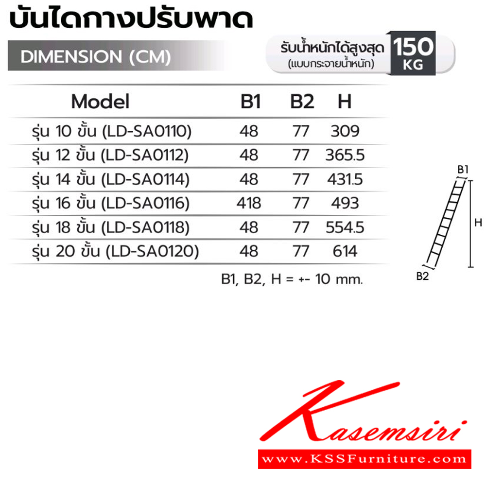 - รับน้ำหนักได้ 150 กิโลกรัม