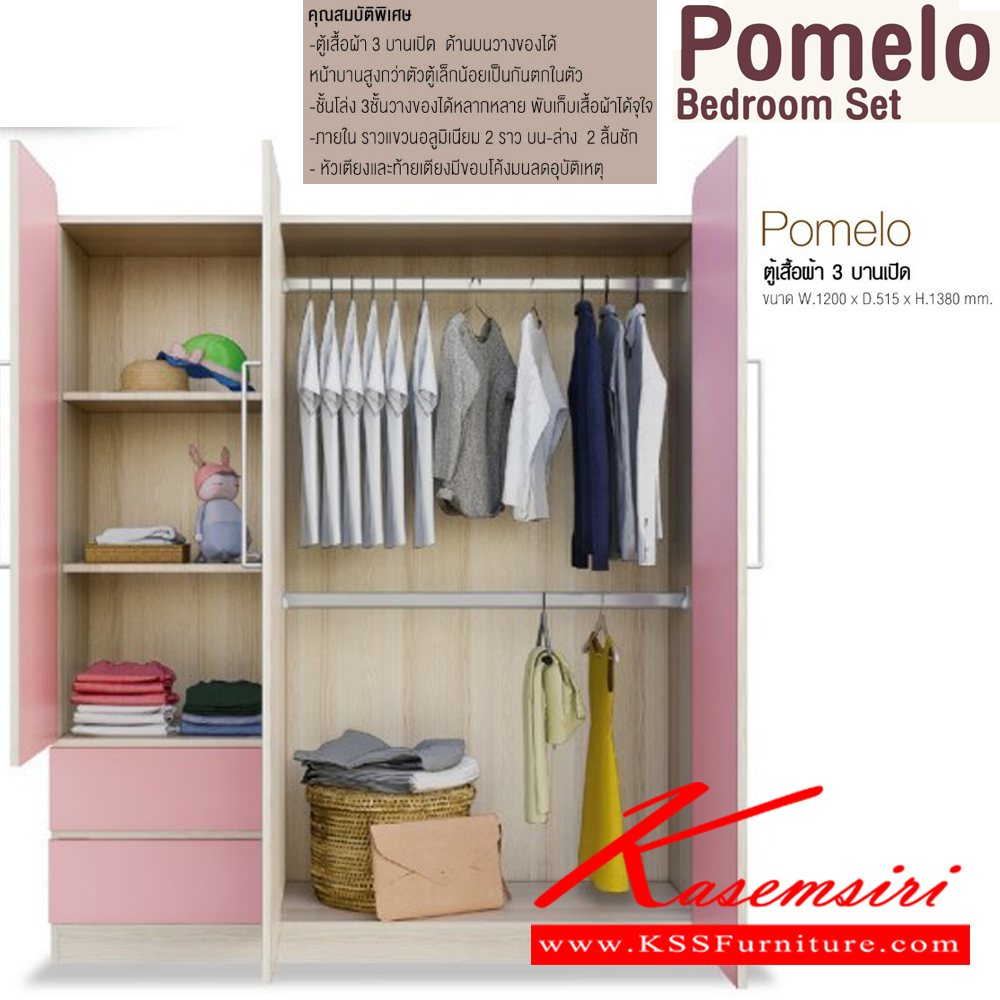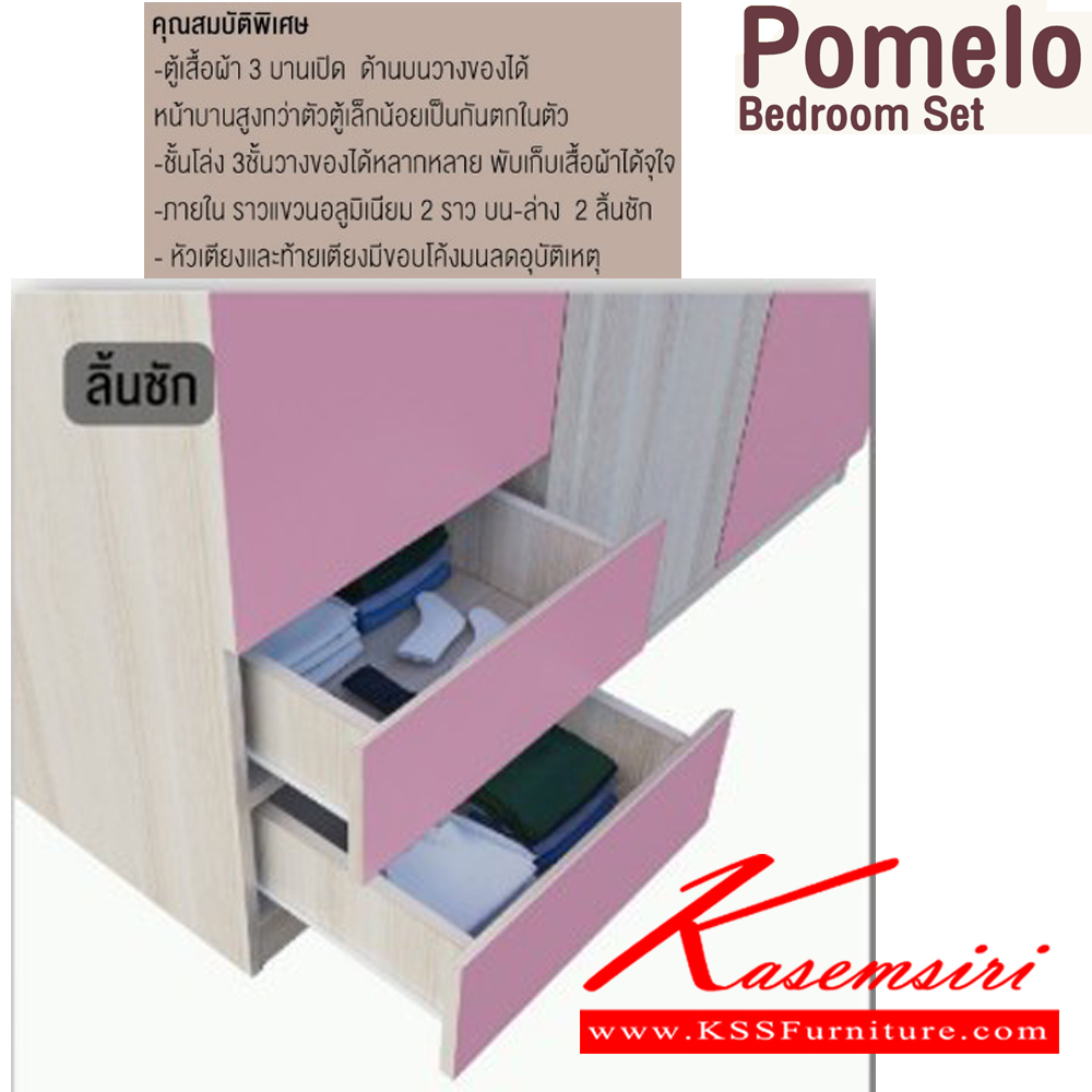 ชุดห้องนอนเด็ก เฟอร์นิเจอร์เด็ก โพมีโล่ Pomelo ประกอบด้วย เตียง3.5ฟุต และ ตู้เสื้อผ้า3บานเปิด พร้อมโต๊ะหนังสือ (พิ้งค์,บลู,แซน) อิมเมจ ชุดห้องนอน