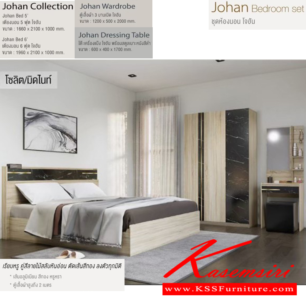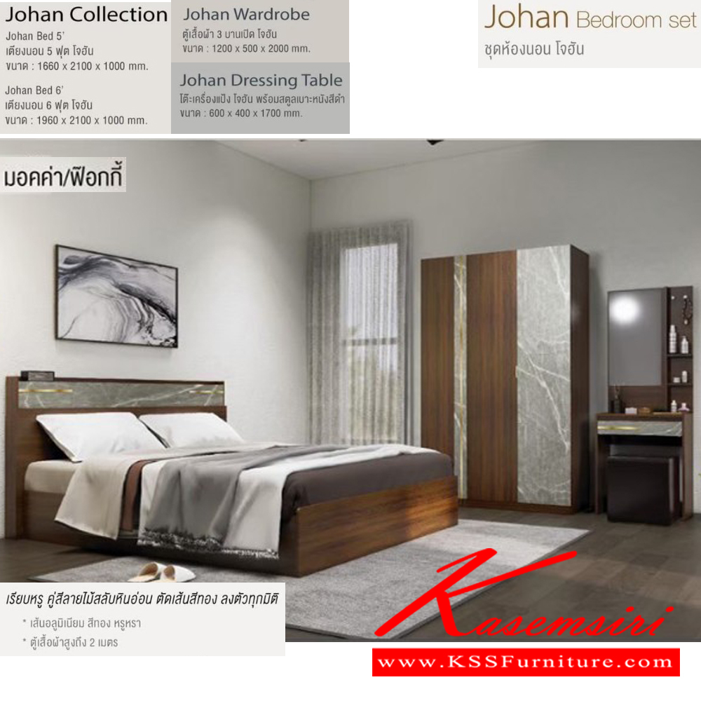 ชุดห้องนอน โจฮัน Johan ประกอบด้วย เตียง6ฟุตหรือเตียง5ฟุต และ ตู้เสื้อผ้า3บานเปิด1.2ม. และโต๊ะเครื่องแป้งพร้อมสตูลหนังสีดำ (มอคค่า/ฟ๊อกกี้,โซลิค/มิดไนท์) อิมเมจ ชุดห้องนอน