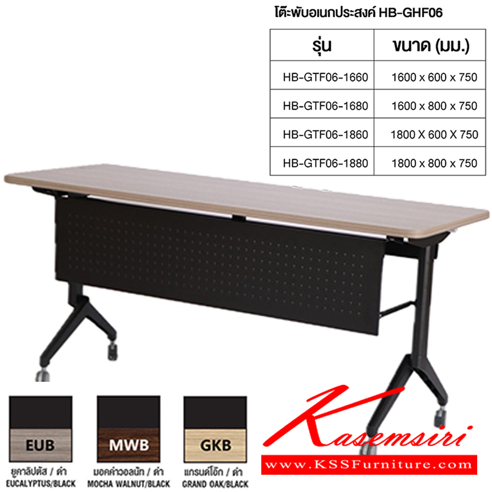 โต๊ะพับอเนกประสงค์ โต๊ะประชุม HB-GTF06-1660,HB-GTF06-1680,HB-GTF06-1860,HB-GTF06-1880 เลือกสีได้ EUB(ยูคาลิปตัส/ดำ),MWB(มอคค่าวอลนัท/ดำ),GKB(แกรนด์โอ๊ก/ดำ) ไทโย โต๊ะอเนกประสงค์