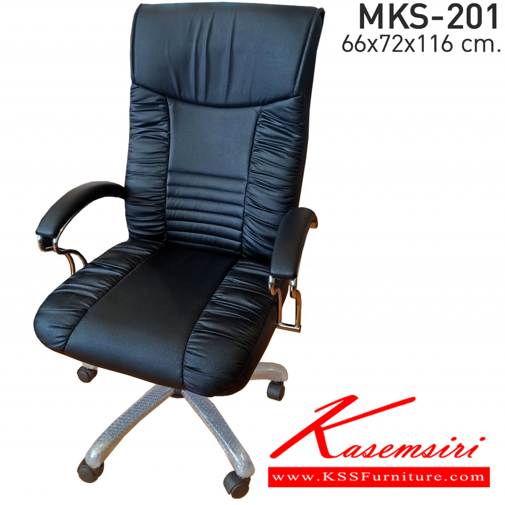 An MKS executive chair with plated armrest, PVC leather/cotton seat and gas-lift adjustable. Dimension (WxDxH) cm : 60x80x113 MKS Executive Chairs