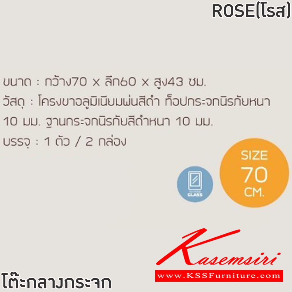 โต๊ะกลางโซฟา ROSE(โรส) ขนาด ก700xล600xส430 มม. โครงขาอลูมิเนียมพ่นสีดำ ท็อปกระจกนิรภัยหนา 10 มม. ฐานกระจกนิรภัยสีดำหนา 10 มม. ฟินิกซ์ โต๊ะกลางโซฟา