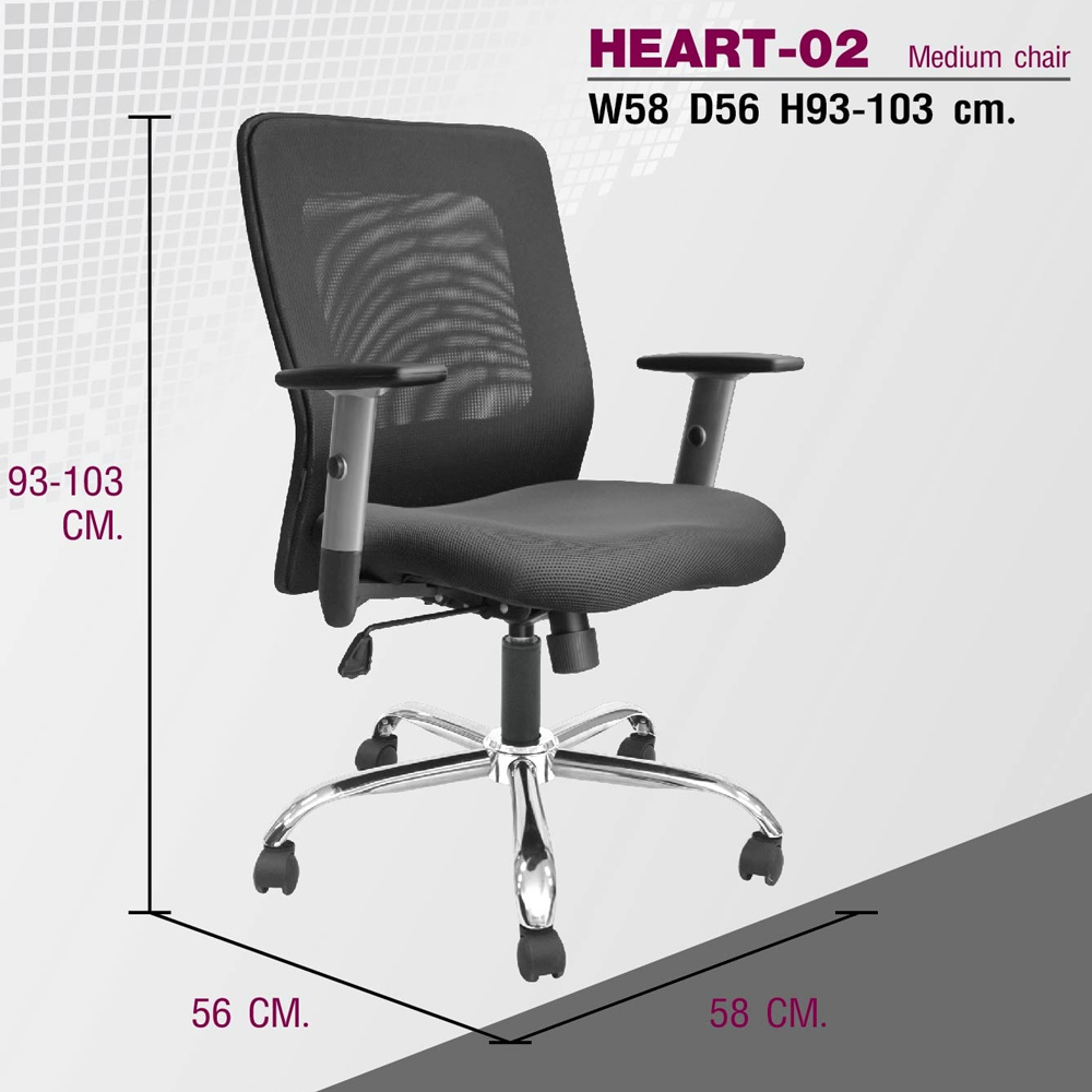 เก้าอี้สำนักงาน พนักพิงตาข่าย ขาเหล็กชุบโครเมี่ยม สามารถปรับระดับสูง-ต่ำได้ เบาะหุ้ม ผ้าฝ้าย/หนังเทียม/หนังแท้ ขนาด ก580xล560xส930-1030 มม. อิโตกิ เก้าอี้สำนักงาน (พนักพิงกลาง)