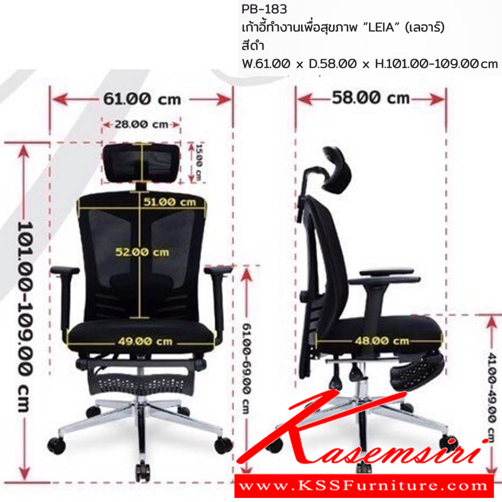 เก้าอี้ทำงานเพื่อสุขภาพ "LEIA" เลอาร์ ขนาดW61.00x D58.00x H101.00-109.00 cm. มีที่พักเท้า พับเก็บได้ พรีลูด เก้าอี้สำนักงาน (พนักพิงสูง)
