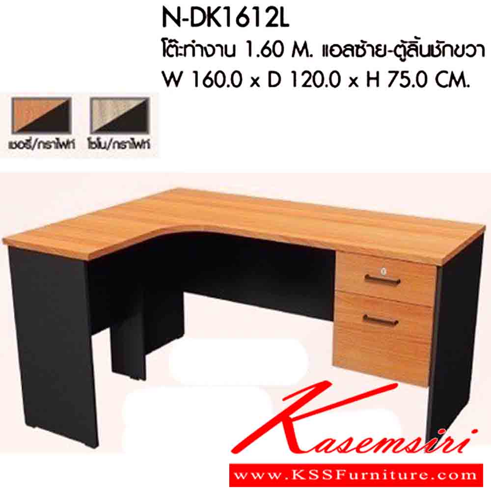 โต๊ะทำงาน 1.60 M. แอลซ้าย-ตุ้ลิ้นชักขวา ขนาดW160.0 x D120.0 x H75.0 CM. มีให้เลือก 2 สี : เชอรี่/กราไฟท์ , โซโน/กราไฟท์ พรีลูด โต๊ะทำงาน
