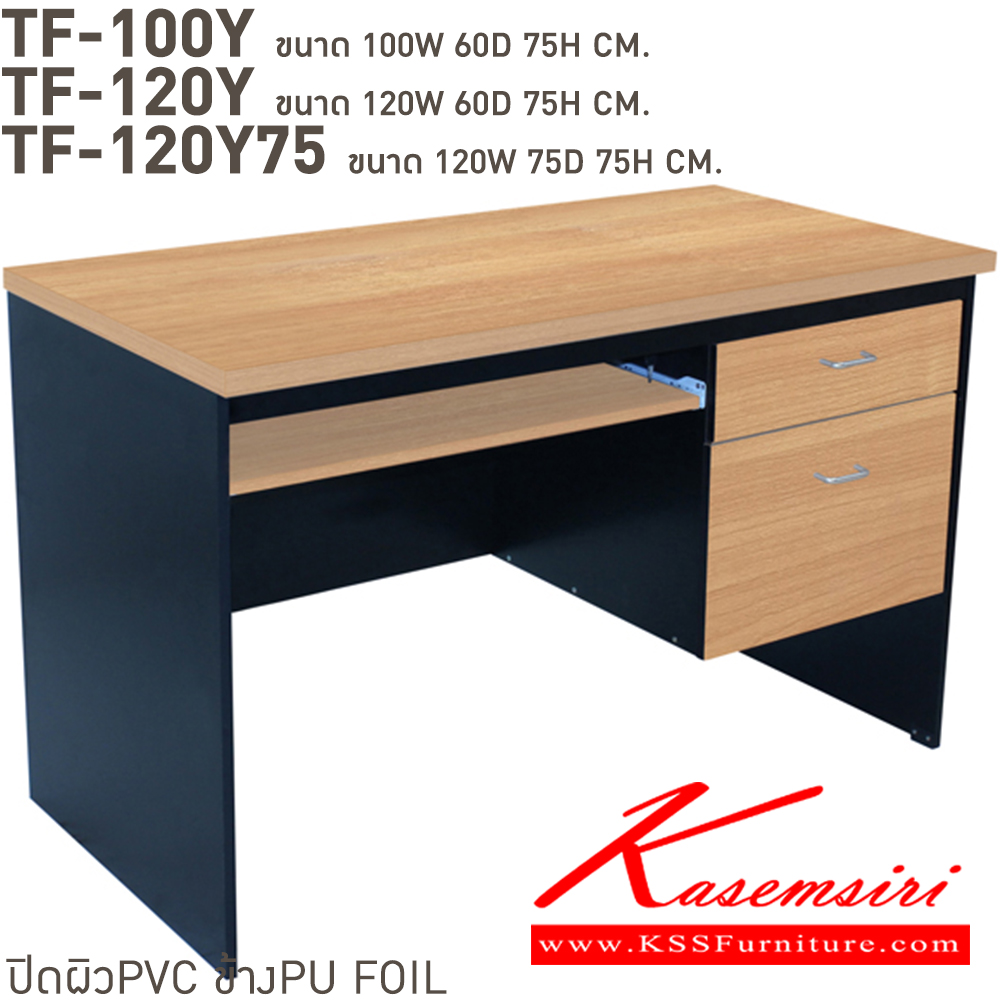 โต๊ะคอมพิวเตอร์ 2 ลิ้นชัก 1คีย์บอร์ด ปิดผิวPVC TF-100Y(ลึก60ซม.),TF-120Y(ลึก60ซม.),TF-120Y75(ลึก75ซม.) บีที โต๊ะสำนักงานPVC บีที โต๊ะสำนักงานPVC