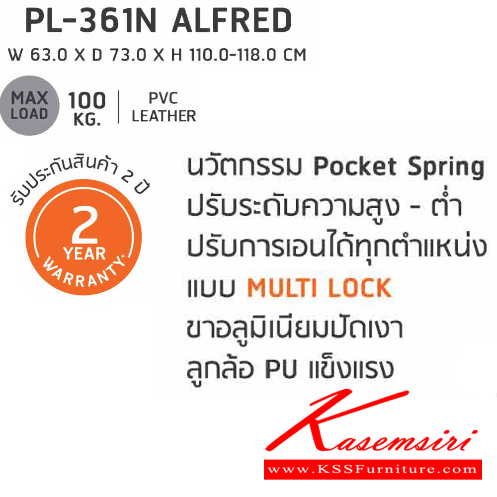 เก้าอี้ผู้บริหาร Pocket Spring พ็อกเก็ตสปริง PL-361N ALFRED ขนาด ก630xล730xส1100-1180มม. ชัวร์ เก้าอี้สำนักงาน ชัวร์ เก้าอี้สำนักงาน