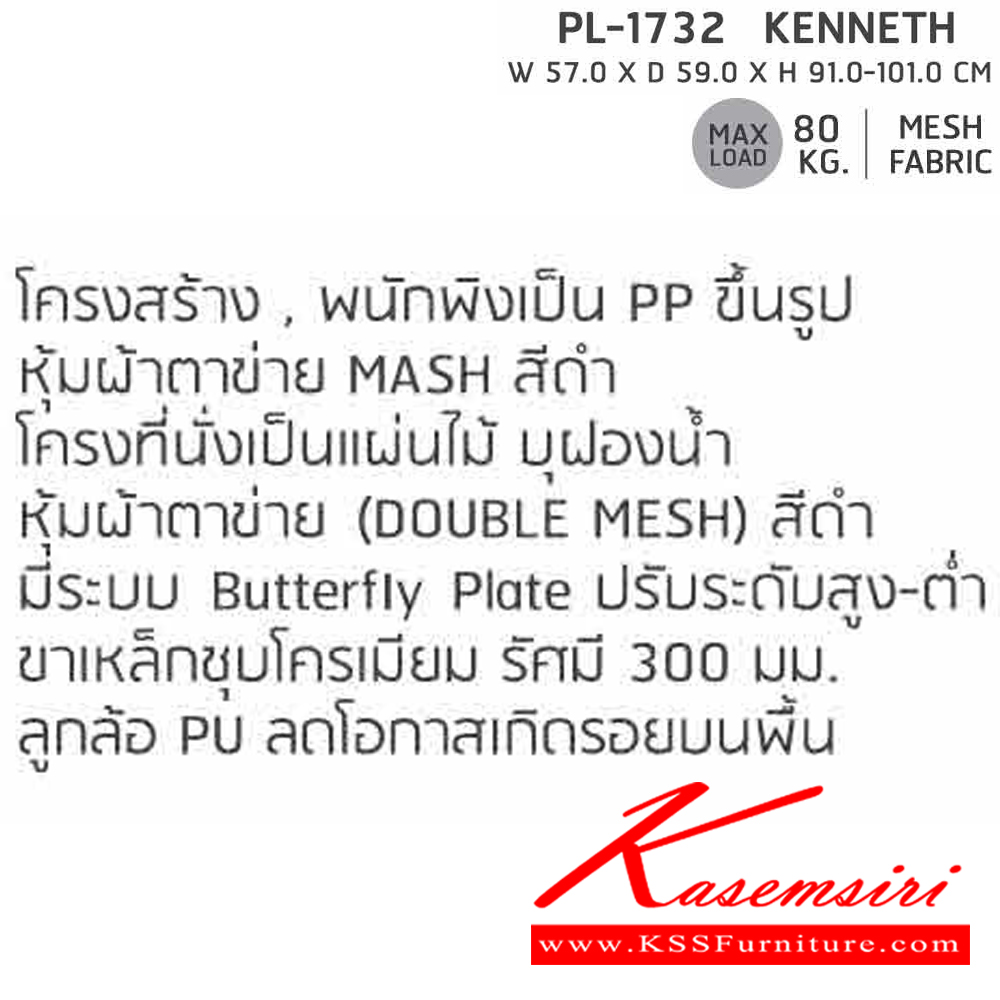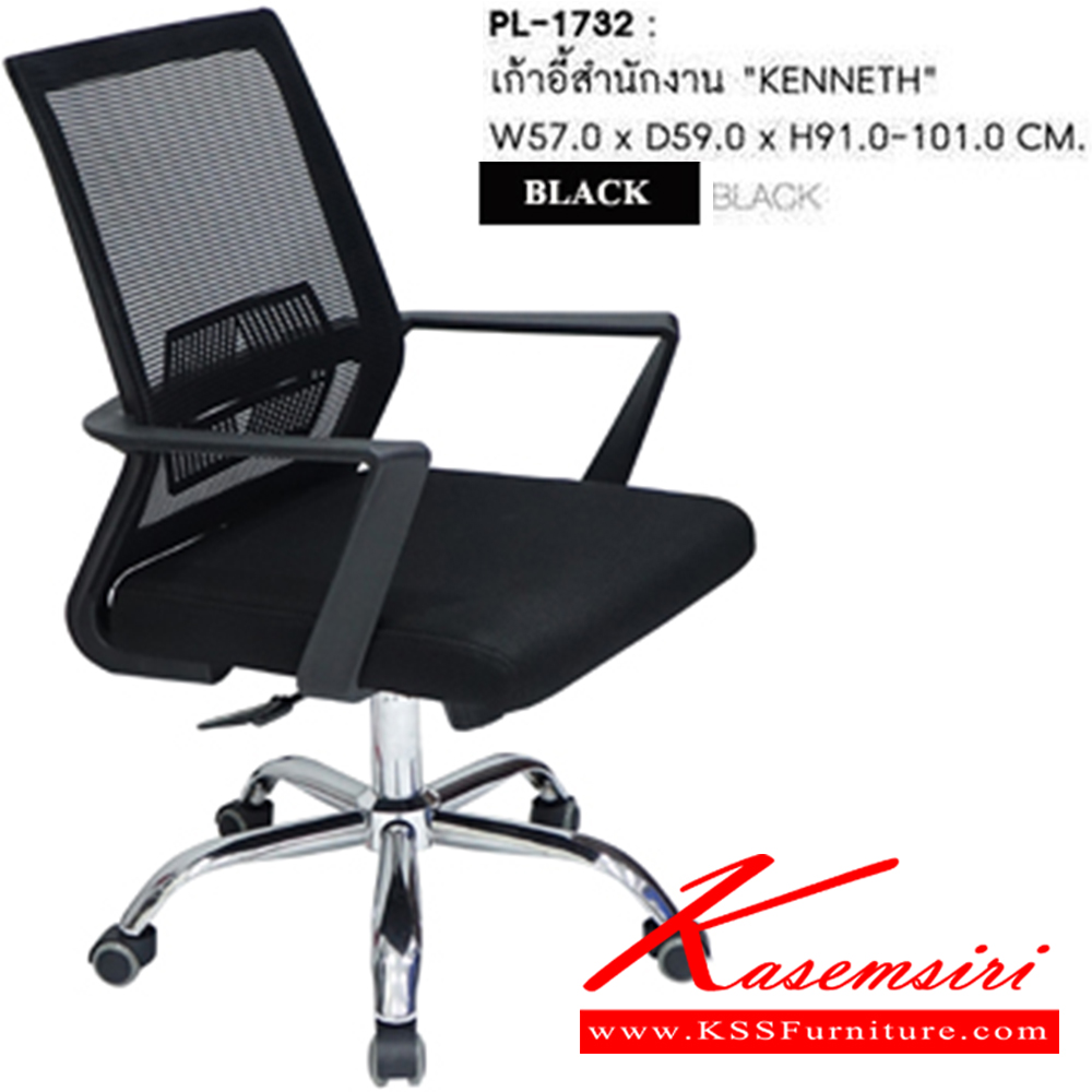 เก้าอี้สำนักงาน KENNETH รุ่น PL1732 ขนาด ก570Xล590Xส910-101 มม. MESH โครงพิงเป็น PP ขึ้นรูปหุ้มด้วยผ้าตาข่ายสีดำ ระบายอากาศได้ดี ชัวร์ เก้าอี้สำนักงาน ชัวร์ เก้าอี้สำนักงาน