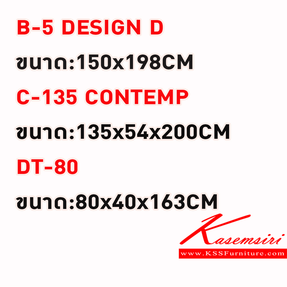 ชุดห้องนอนประกอบด้วย B-3.5/5/6 DESIGN D เตียงนอน 3.5/5/6 ฟุต มีลิ้นชักข้างเตียง C-135 CONTEMP ตู้เสื้อผ้า ขนาด 1350x540x2000 มม. DT-80 โต๊ะเครื่องแป้ง ขนาด 800x400x1630 มม. ดีดี ชุดห้องนอน ดีดี ชุดห้องนอน