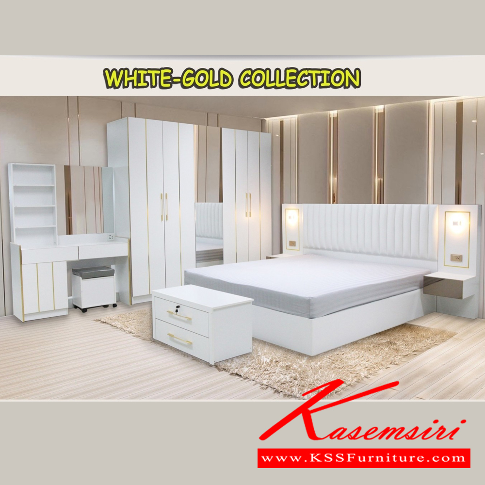 ชุดห้องนอน ประกอบด้วย ตู้เสื้อผ้า 225ซม.,เตียง6ฟุต,โต๊ะเครื่องแป้ง,ตู้หัวเตียง white-gold บานประตูผิวเมลามีนกันรอยขีดข่วนมือจับและคิ้วทอง อลูมิเนียมเกรด A บานพับ soft-close hafele ฟังก์ชั่นภายในตู้สามารถปรับได้หลายรูปแบบ ดีดี ชุดห้องนอน ดีดี ชุดห้องนอน