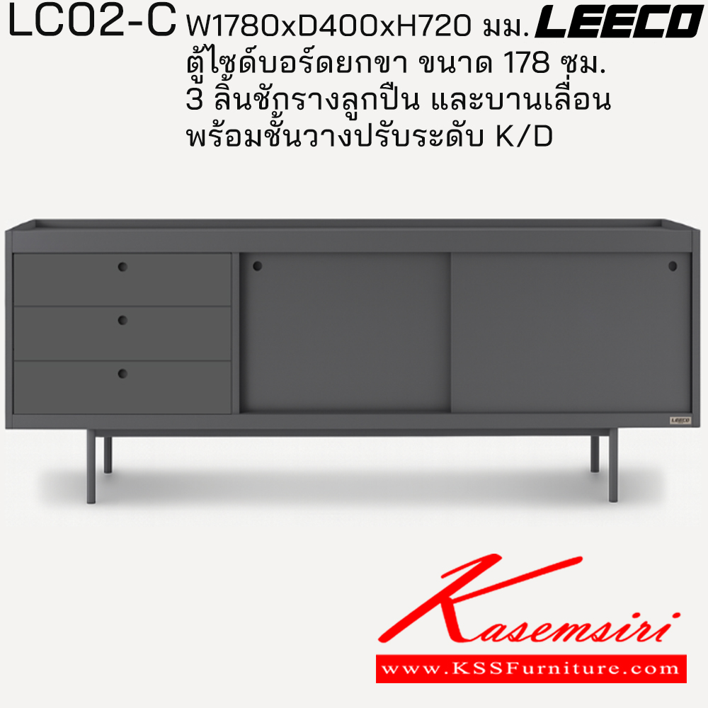 ตู้ไซด์บอร์ดยกขา 178 ซม. 3 ลิ้นชักรางลูกปืน และบานเลื่อน พร้อมชั้นวางปรับระดับ ถอดประกอบได้ ขนาด W1780xD400xH720 มม. ลีโก้ ตู้อเนกประสงค์เหล็ก