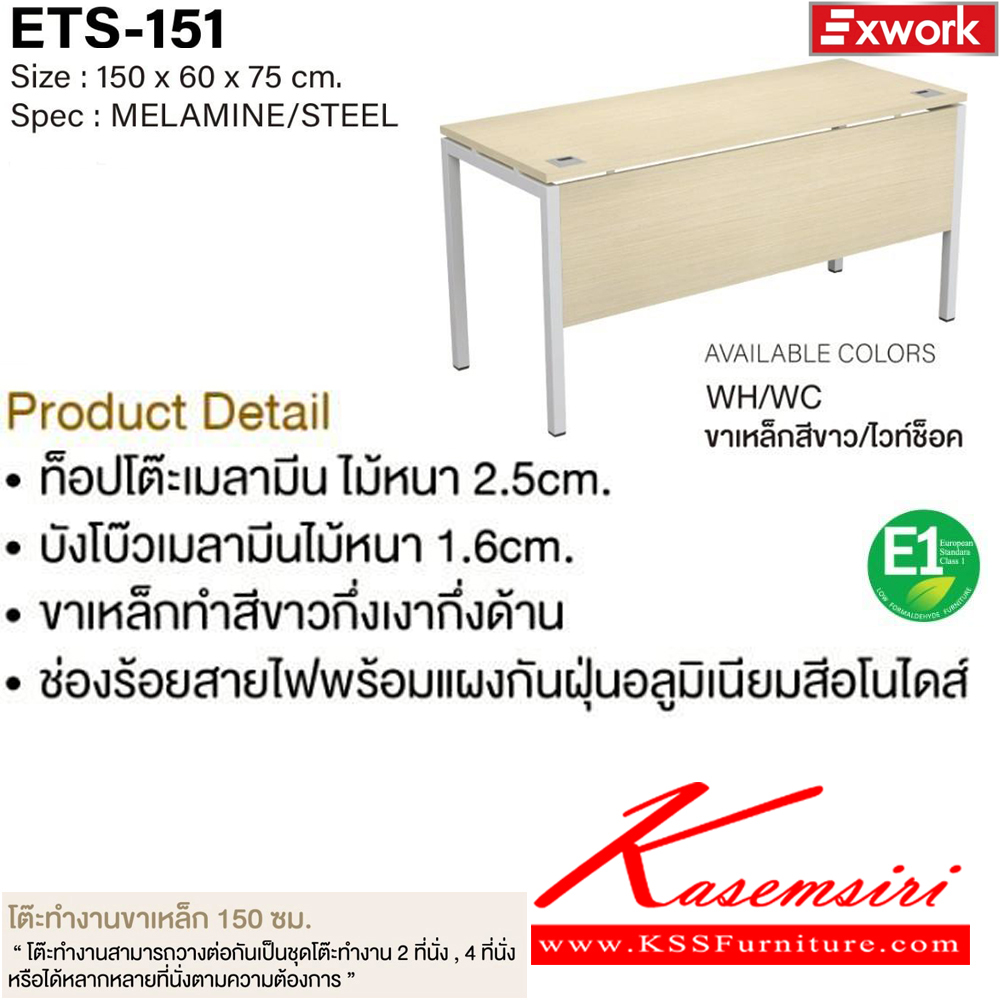 โต๊ะทำงานขาเหล็ก 1.5 ม. ขนาด 1500x600x750 มม. SPEC:MELAMINE/STEEL WH/WC(ขาเหล็กสีขาว/ไวท์ช็อค),BK/DC(ขาเหล็กสีดำ/ดาร์คช็อค) ท็อปโต๊ะหนา 2.5 ซม. บังโบ๊หนา1.6ซม.พร้อมช่องร้อยสายไฟ เอ็กซ์ซีเอฟ โต๊ะทำงานขาเหล็ก ท็อปไม้