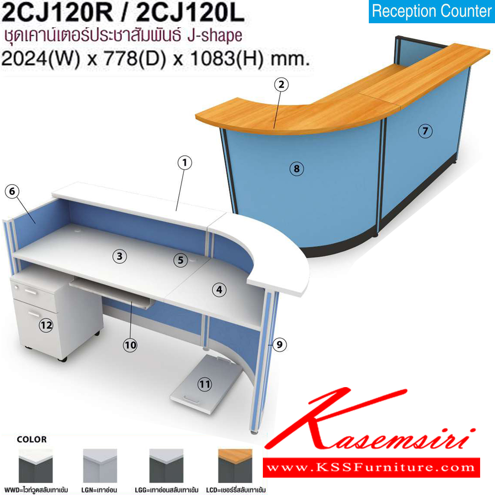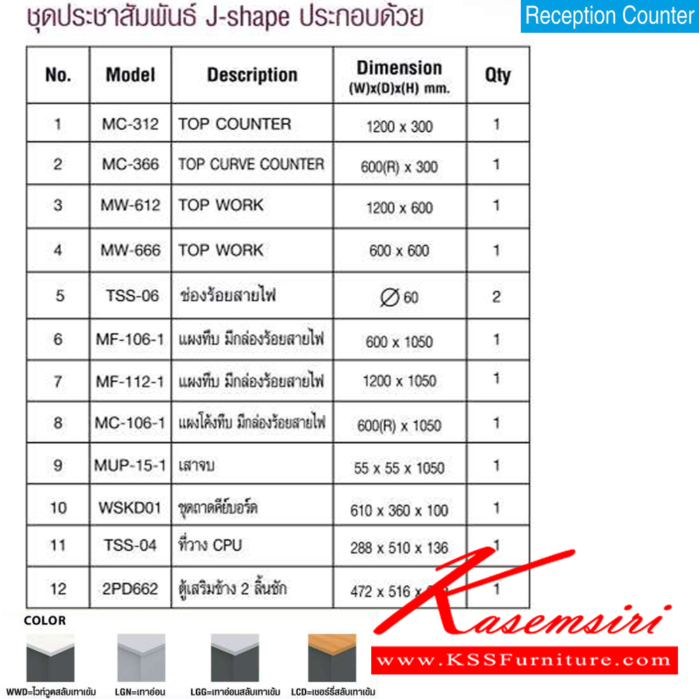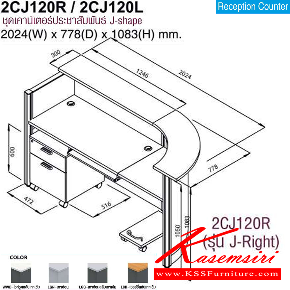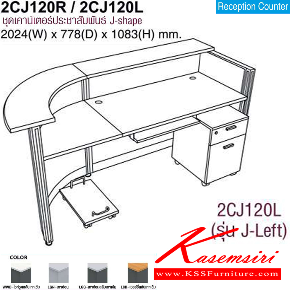 A Mo-Tech counter with J-shaped and left/right curved. Dimension (WxDxH) cm : 202.4x77.8x108.3