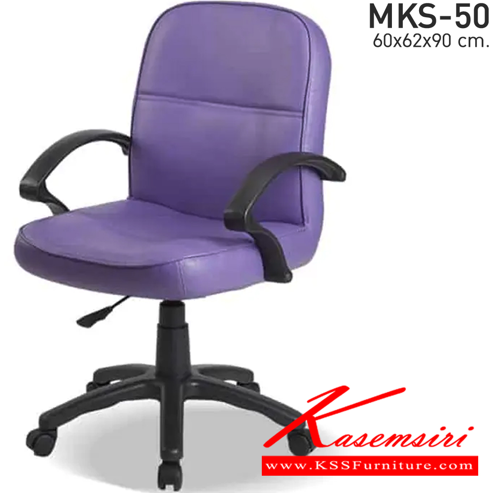 An MKS office chair with PVC leather/cotton seat and gas-lift adjustable. Dimension (WxDxH) cm : 59x65x85
