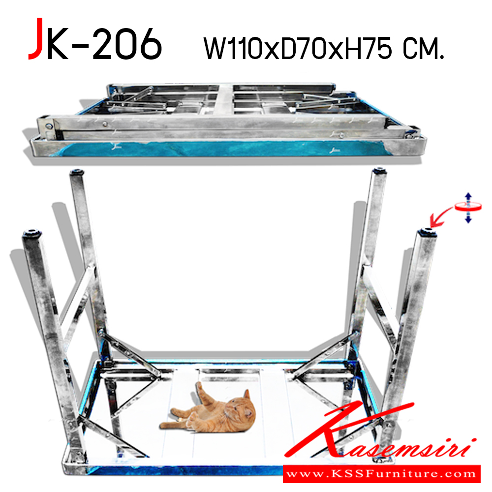A JK stainless steel folding table. Dimension (WxDxH) cm : 110x70x75