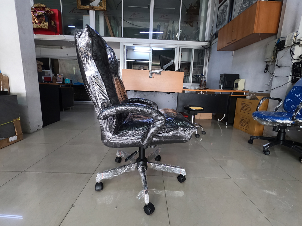 A Chawin office chair with PVC leather seat, tilting backrest and gas-lift adjustable. Dimension (WxDxH) cm : 62x57x100-110