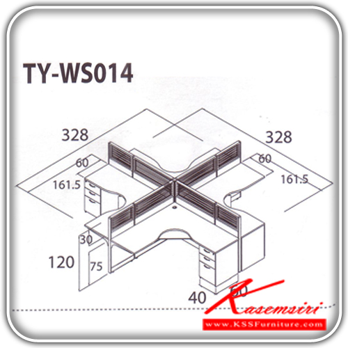 A Taiyo work station office set for 4 people. Dimension (WxDxH) cm : 328x328x120