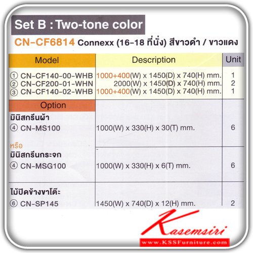 Connexx (16-18ที่นั่ง) สีขาวดำ/ขาวแดง ขนาด 6800X1450X740มม. พร้อมรางไฟ ชุดโต๊ะทำงาน ไทโย
