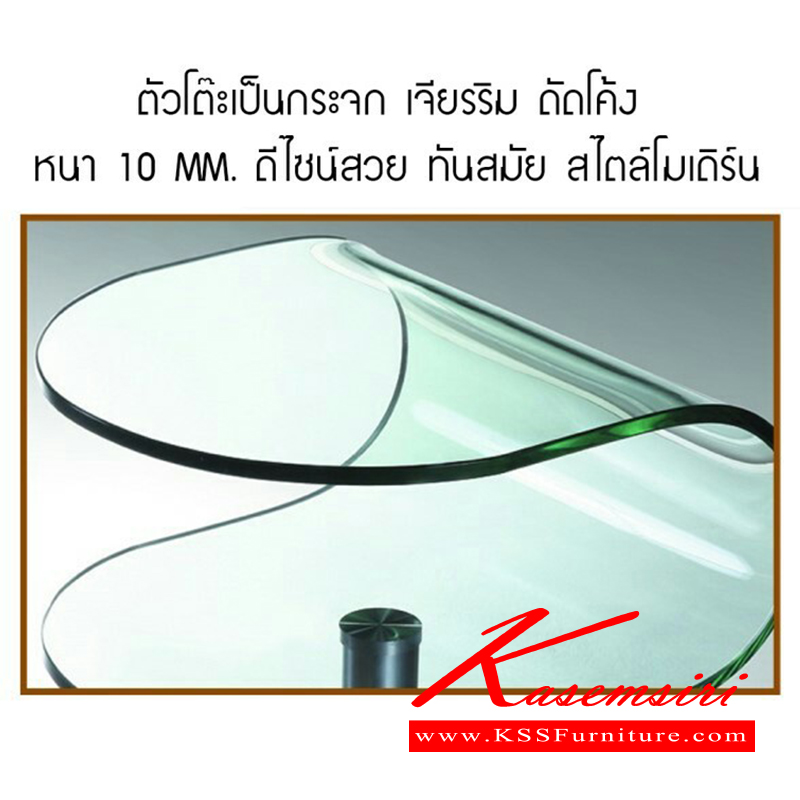 โต๊ะข้าง กระจกดัดโค้ง หน้า 10มม. เจียรริม ดีไซน์สวย ขาเหล็กชุบโครเมี่ยม ขนาด ก400xล400xส680มม. โต๊ะอเนกประสงค์ เบสช้อยส์
