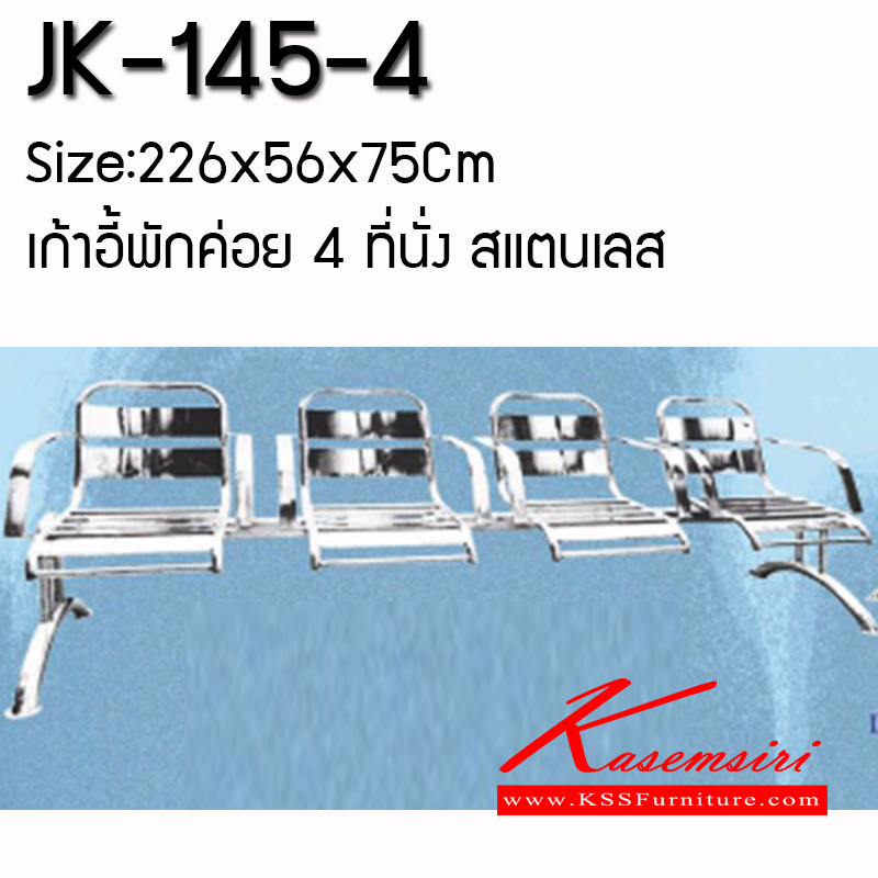 เก้าอี้พักคอย 4 ที่นั่ง ขนาด 226x56x75 ซม. มีที่ท้าวแขน เก้าอี้สแตนเลส เจเค