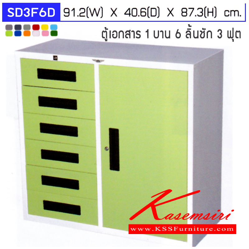 ตู้เอกสาร 1 บานเปิด 6 ลิ้นชัก รุ่น SD3F6D ขนาด ก912xล406xส873มม.สามารถเลือกได้ทั้งสีมาตรฐานและสีสันพิเศษ ตู้เอกสารเหล็ก อีลิแกนต์