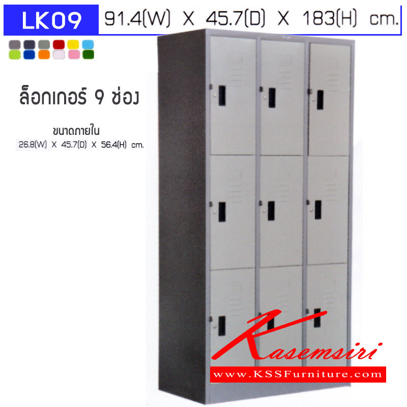 ตู้ล็อกเกอร์เหล็ก 9 ช่อง ภายในมีแผ่นชั้น 1 แผ่น ขนาด ก914xล457xส1830มม.(ขนาดภายใน ก268xล457xส564มม.)เลือกได้ทั้งสีมาตรฐานและสีสันพิเศษ ตู้ล็อกเกอร์เหล็ก อีลิแกนต์