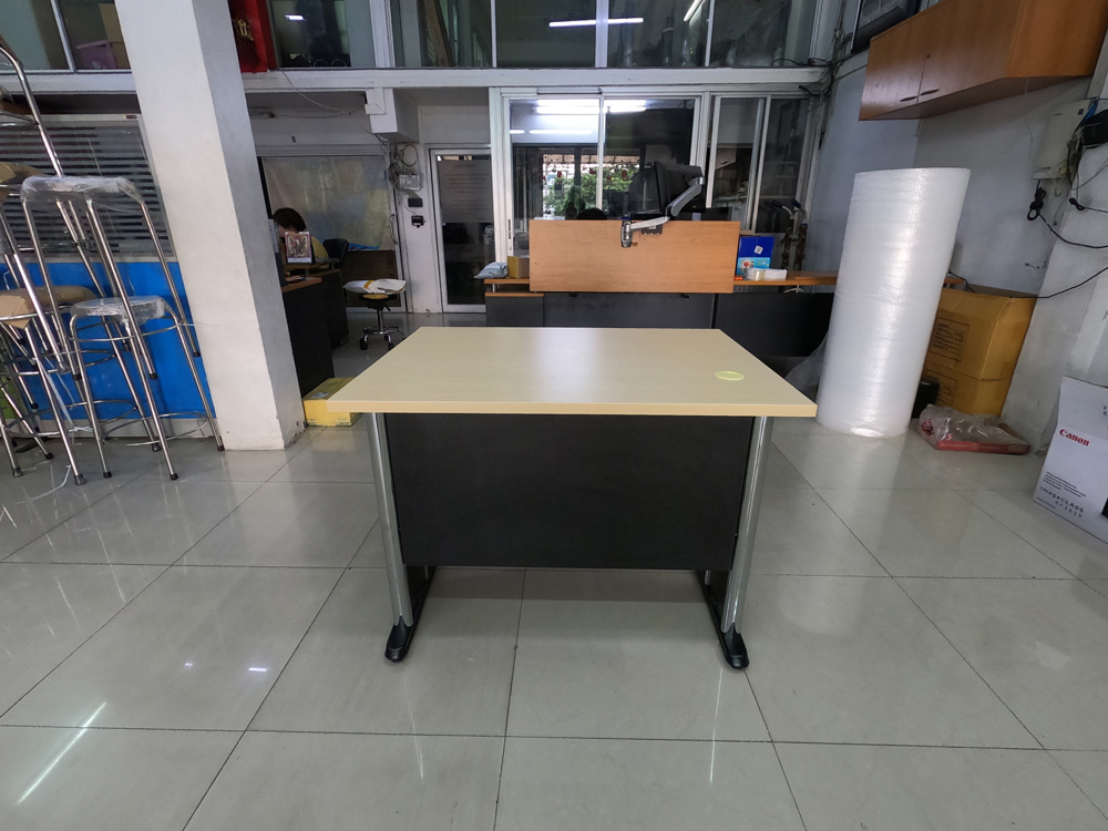 โต๊ะทำงานขาเหล็ก ท๊อปเมลามีน ลายไม้,บังตาสีดำ โต๊ะสำนักงานเมลามิน โต๊ะเหล็ก วีซี