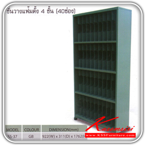 ชั้นวางแฟ้ม4ชั้น(40ช่อง) ขนาด ก922xล311xส1762 มม. สีเทาเข้มราชการ ชั้นหนังสือเหล็ก Smart FORM