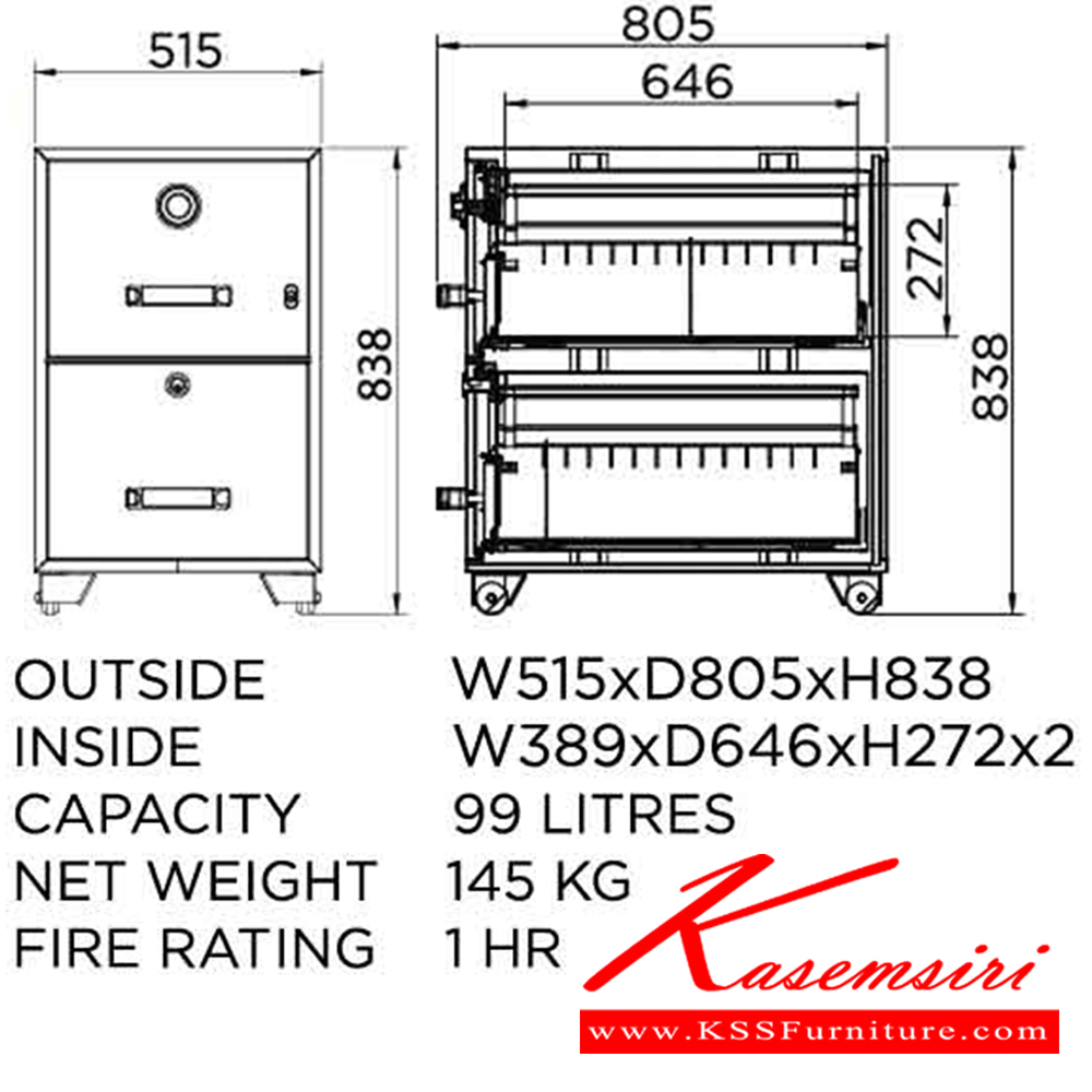 ตู้นิรภัยรหัสหมุน รุ่น FRC220 น้ำหนัก 145 กิโลกรัม ขนาดภายนอก 515×805x838 มม. ขนาดภายใน 389x646x272 มม. ตู้เซฟ เพรสซิเด้นท์