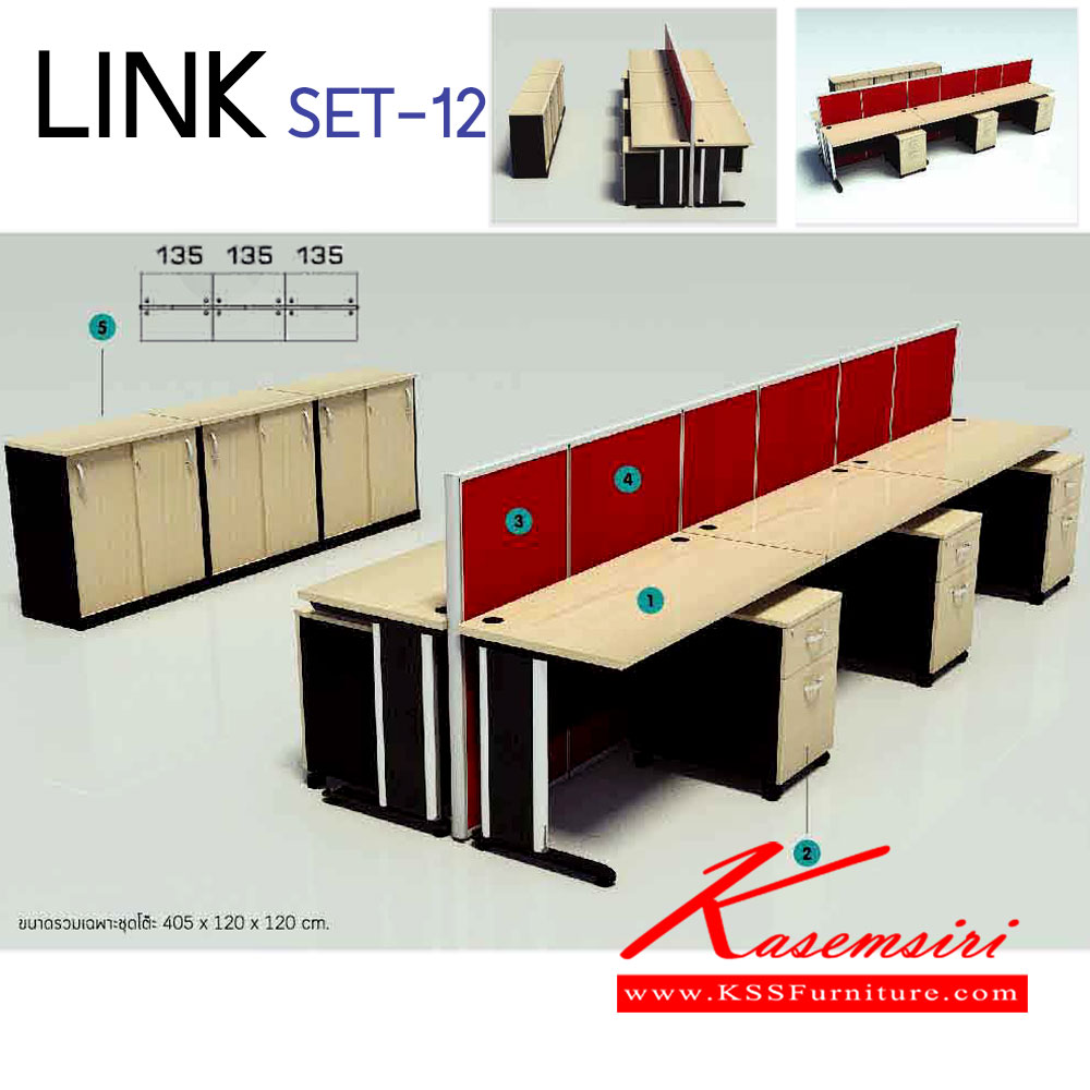 ชุดโต๊ะทำงาน 6 ที่นั่ง พร้อมตู้เอกสาร ตู้ลิ้นชัก และ ฉากกั้น ขนาดโดยรวม ก4200xล1200xส1200มม. อิโตกิ ชุดโต๊ะทำงาน