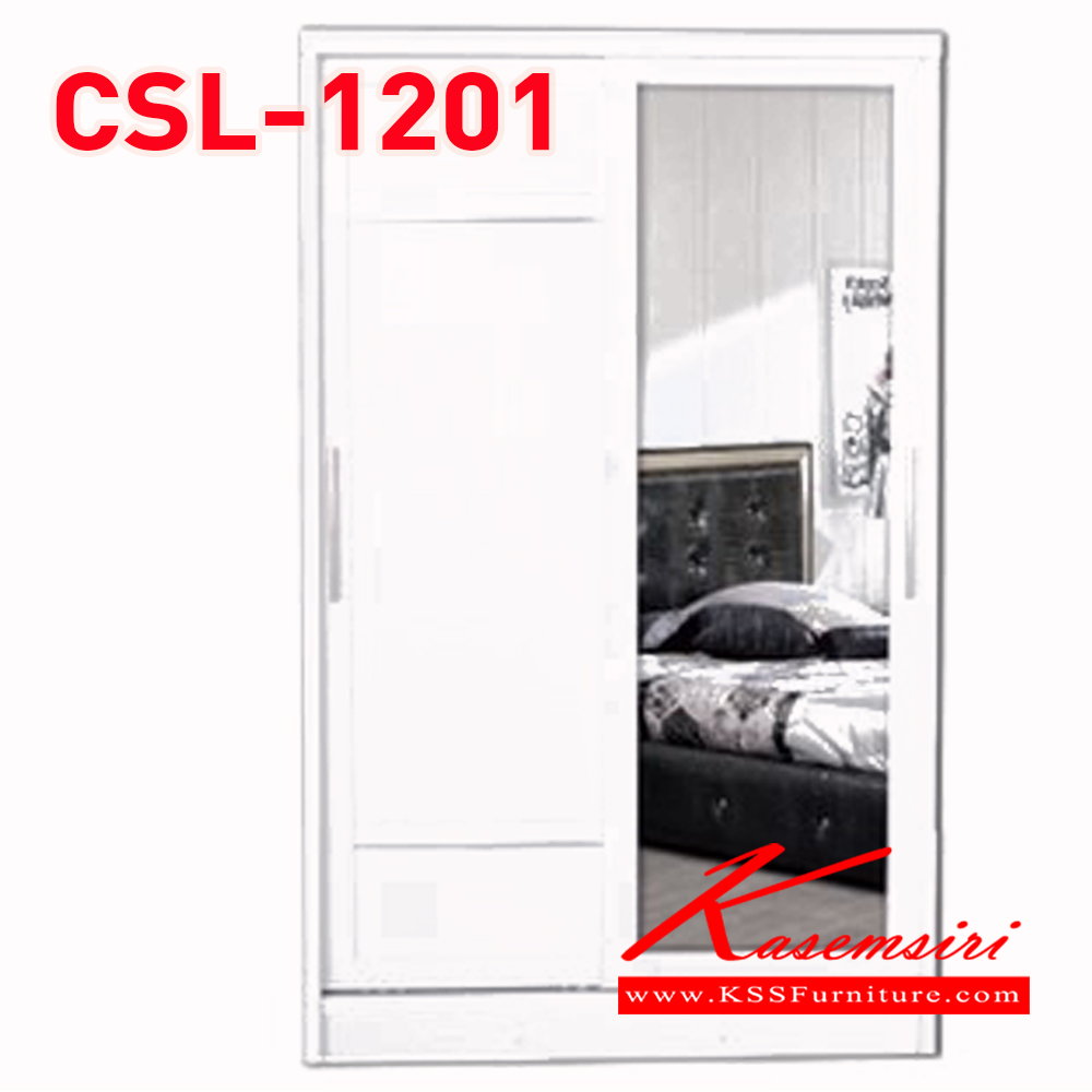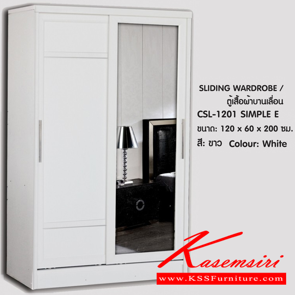 ตู้เสื้อผ้าบานเลื่อน 120 ซม. บานกระจก1บาน บานทึบ1บาน ตู้2ลิ้นชักยกออกได้ ขนาด 1200x600x2000มม. สีขาว**สินค้าไม่รับประกันเหลือง** ดีดี ตู้เสื้อผ้า-บานเลื่อน