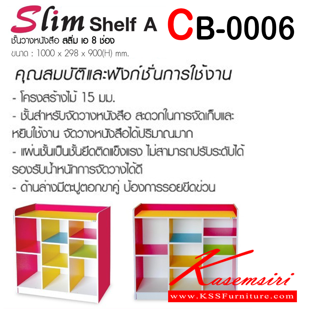 ชั้นวางหนังสือ 8 ช่อง รุ่น CB-0006 ขนาด ก1000xล298xส900 มม. โครงสร้างไม้ หนา 15 มม.