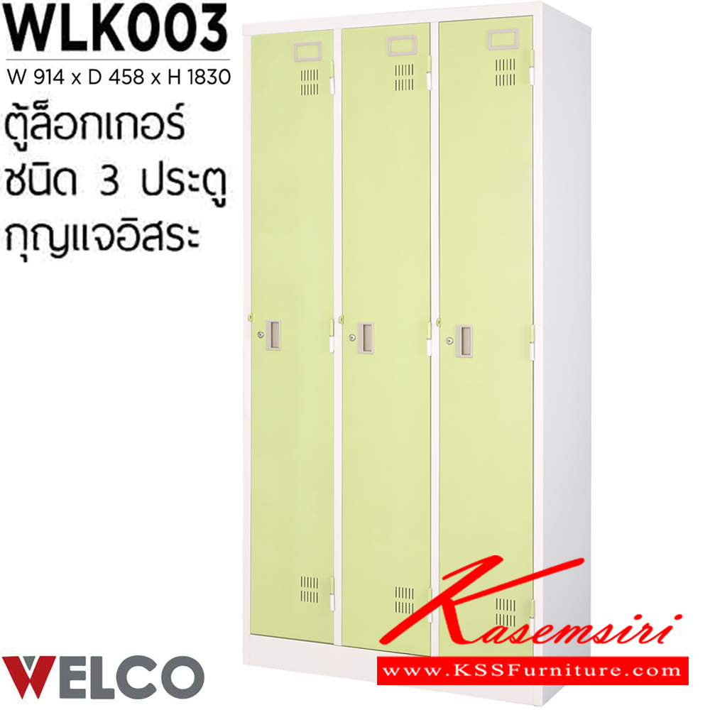 ตู้ล็อกเกอร์ 3 ประตู กุญแจอิสระ ขนาด ก914xล458xส1830 มม. ตู้ล็อกเกอร์เหล็ก WELCO เวลโคร ตู้ล็อกเกอร์เหล็ก