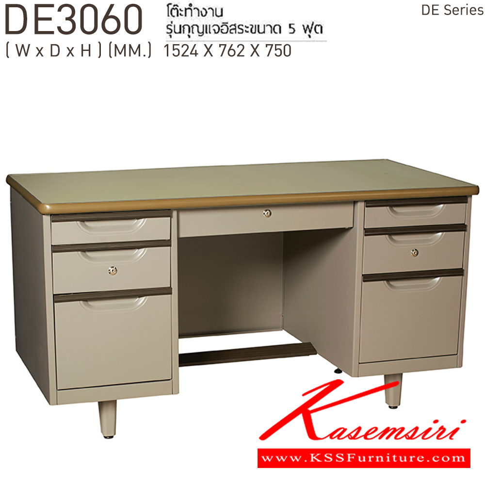 โต๊ะทำงาน5ฟุต เหล็ก 3 ลิ้นชักคู่ซ้ายขาว และลิ้นชักกลาง รุ่นกุญแจอิสระ ขนาด ก1524/xล762xส750 มม. เพรสซิเด้นท์ โต๊ะทำงานเหล็ก