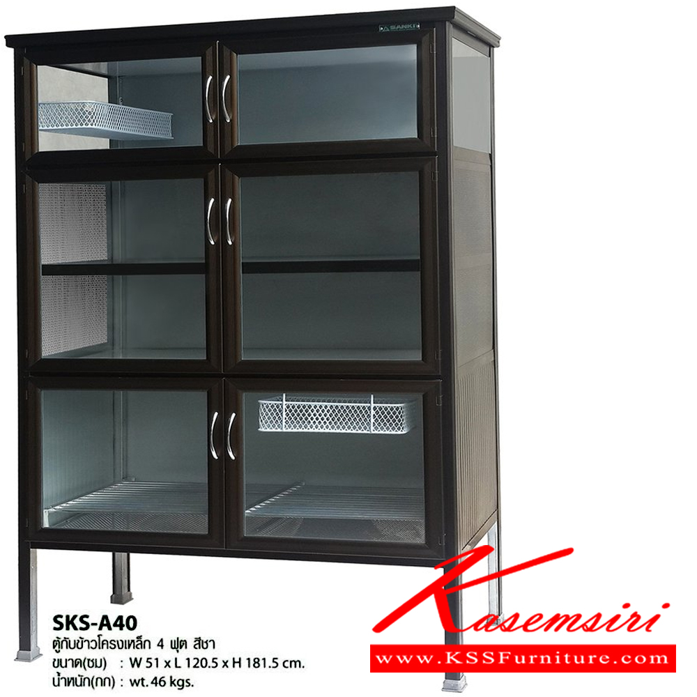 ตู้กับข้าวอลูมิเนียมโครงเหล็ก 4 ฟุต สีชา ขนาด 51x120.5x181.5 ซม. น้ำหนัก 46 กก. ลายกระจกใส,เศรษฐี ตู้กับข้าวอลูมิเนียม Sanki ซันกิ ตู้กับข้าวอลูมิเนียม